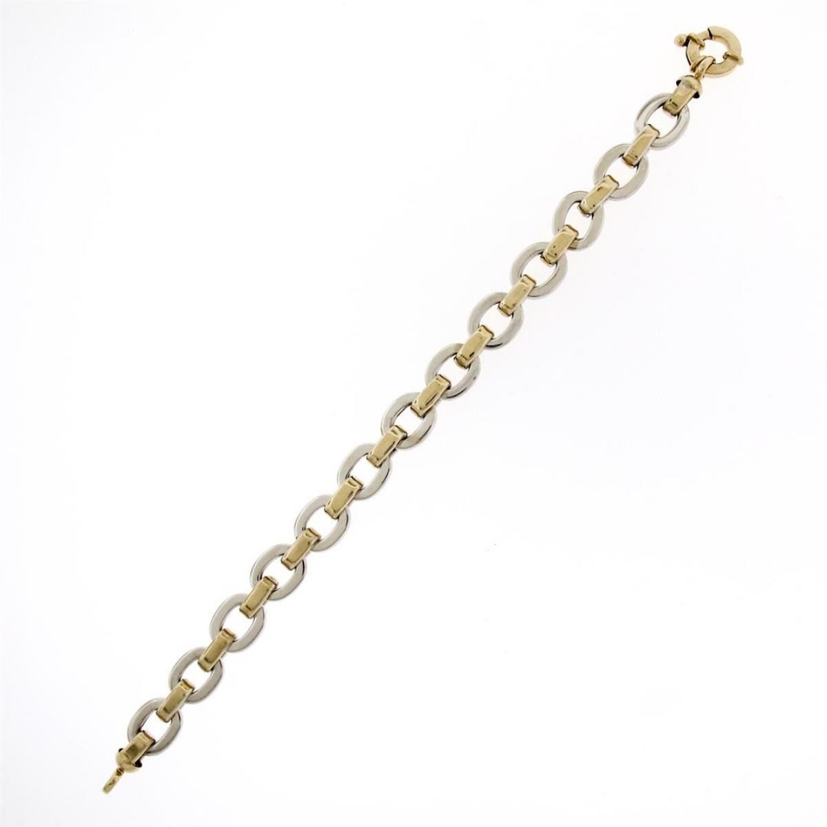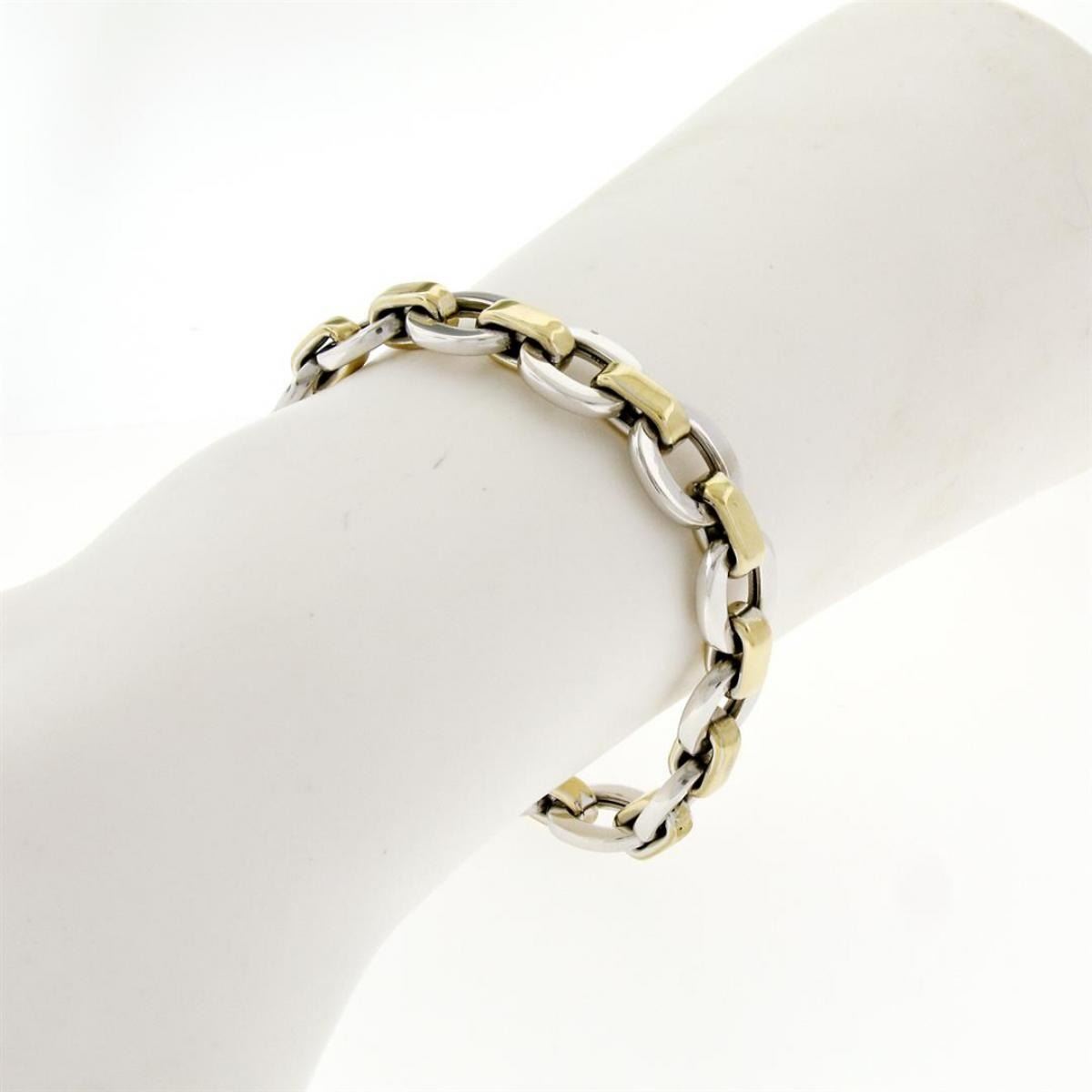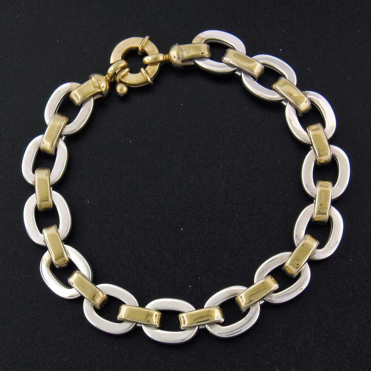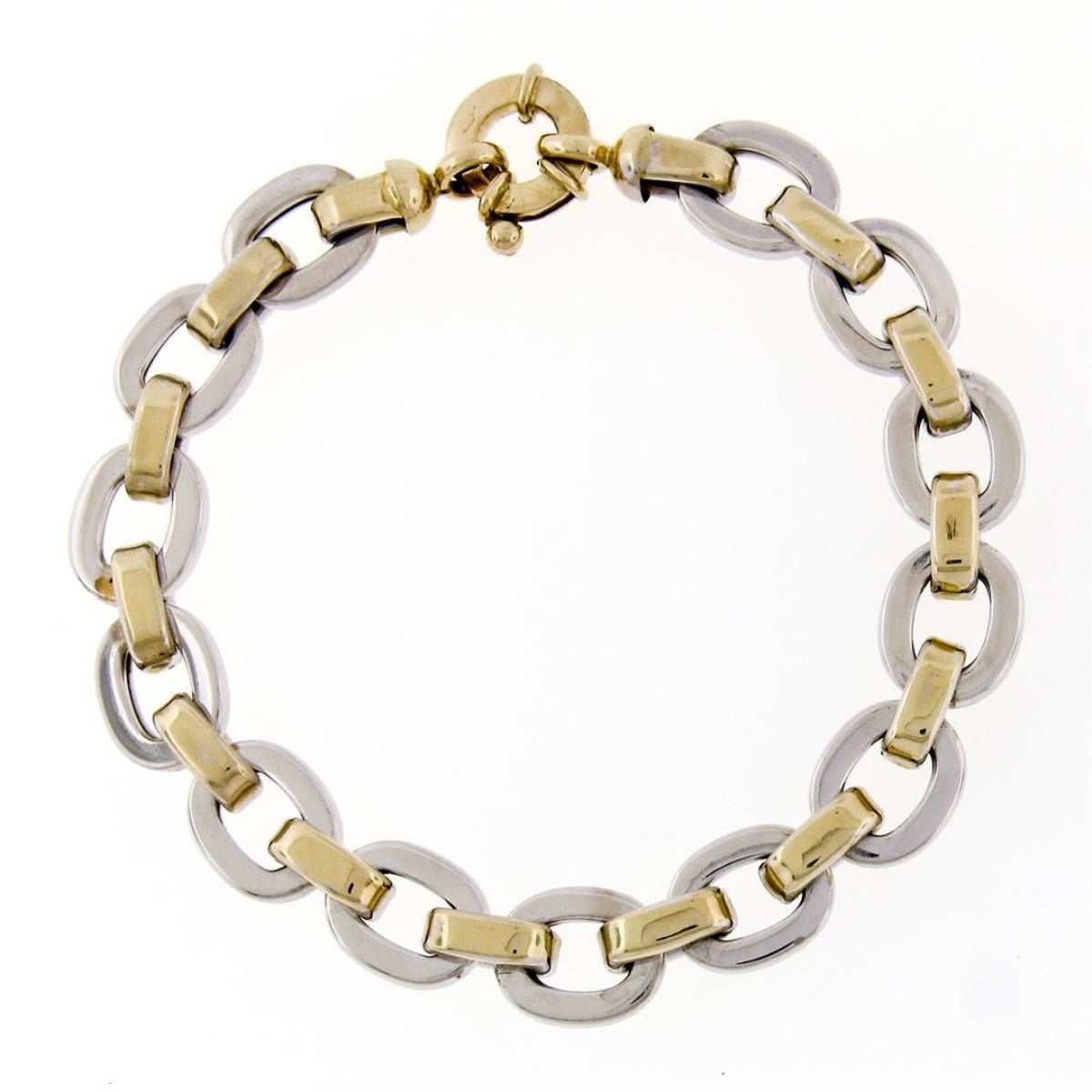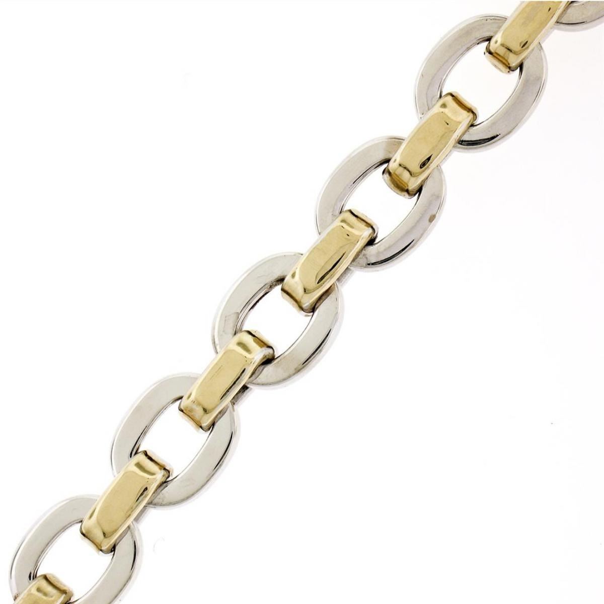 A brand new, Italian-made, 14k gold oval cable link chain bracelet with alternating yellow and white gold links. It weighs a total of 16.98 grams, measures 10.20mm wide, and measures 8 inches in length.