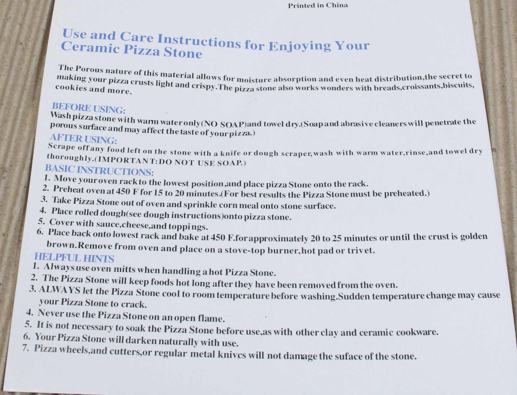 NEW: Item #29171, CERAMIC PIZZA STONE