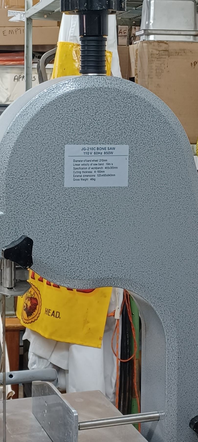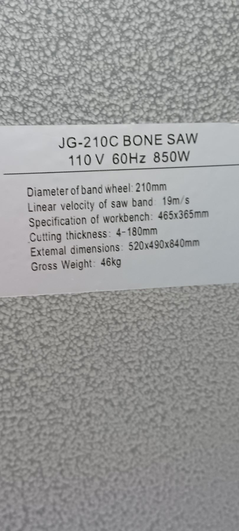 NEW JG 210C TABLE TOP BAND MEAT SAW C/W 850 W MOTOR, 10 INCH NECK UNIT STILL IN CRATE