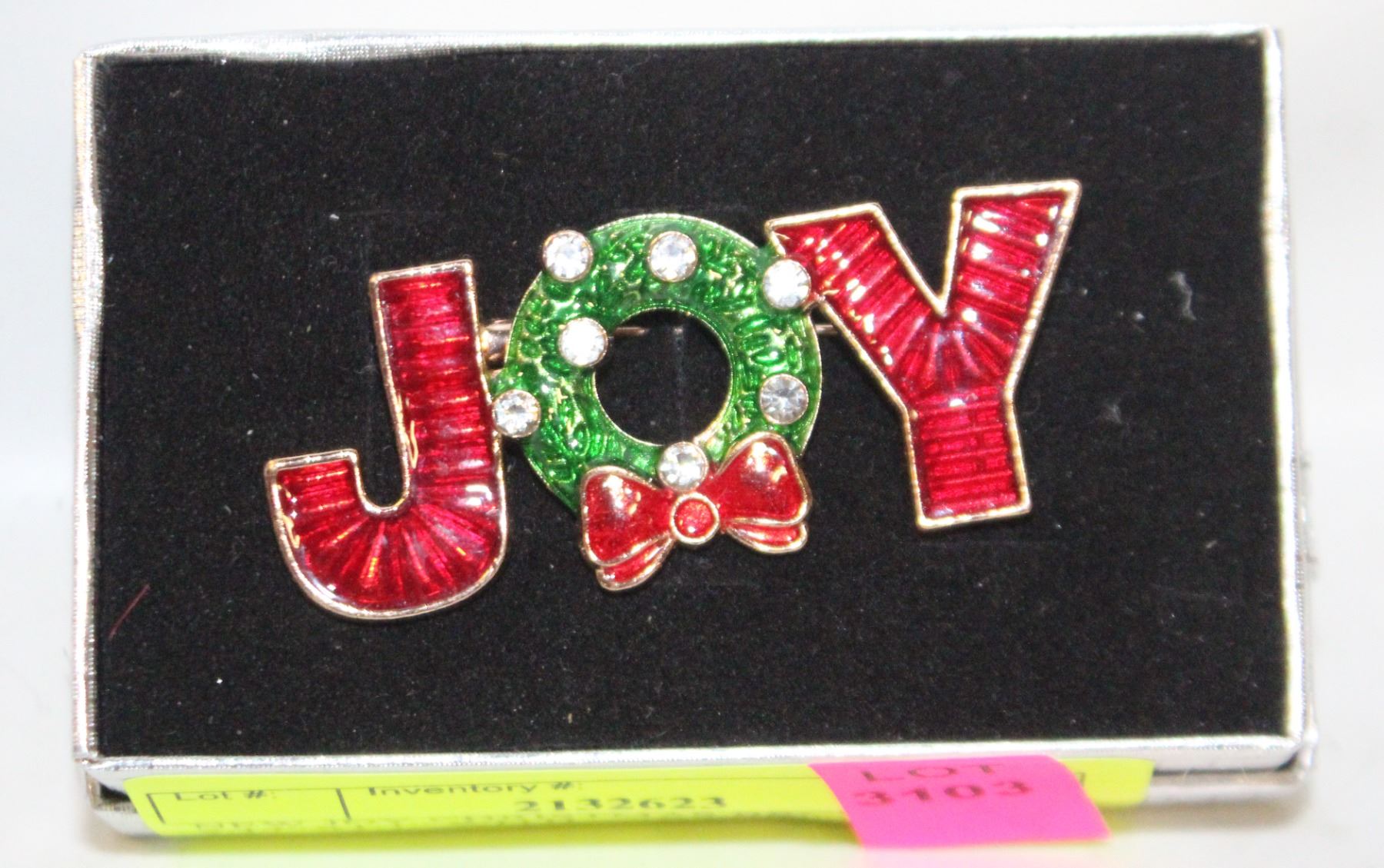 NEW JOY CHRISTMAS BROOCH 2.17”X1.1” WITH
