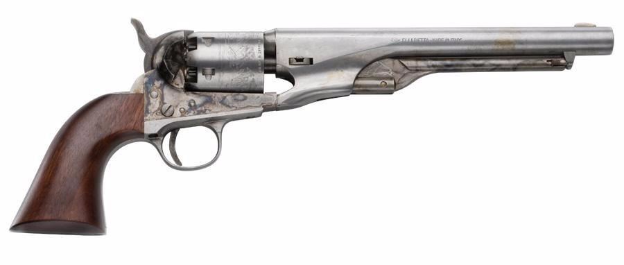 Josey Wales Navy Revolver Features: .36 Caliber 7.5" Round Antique Barrel Antique Frame Walnut Grip Antique Steel Guard Hammer/Blade Sights Overall Length: 13.75" Weighs 2.75"