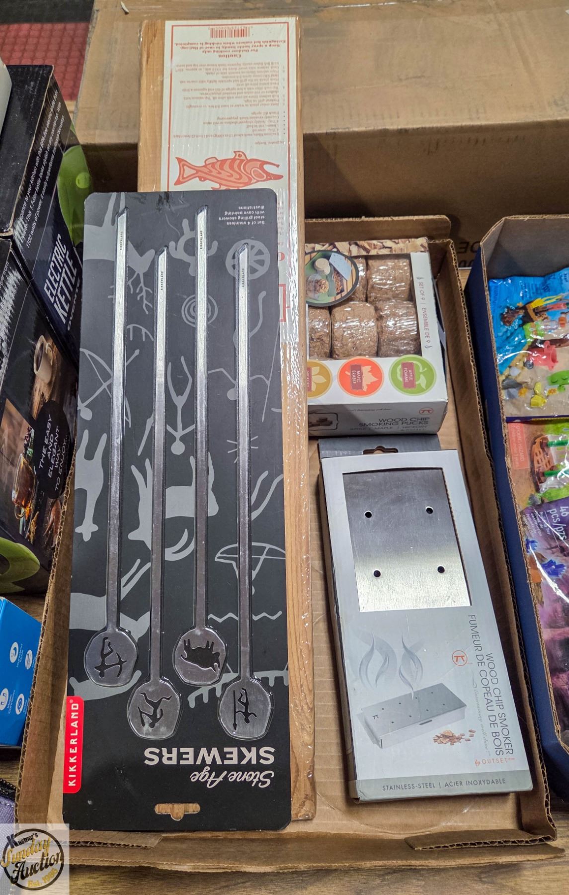 SKEWERS SET OF 4 W/SEALED BRANDER RED CEDAR GRILL PLANK & NEW OUTSET WOOD CHIP SMOKER & GRILLWARE GRILL CHIPS SET OF 9 **ALL ITEMS MUST BE REMOVED BY 5PM SATURDAY, JUNE 14TH 2025. ALL REMAINING ITEMS WILL BE SUBJECT TO A $6.00 PER DAY STORAGE CHARGE. ANY ITEMS REMAINING AFTER MONDAY, JUNE 30TH, 2025 WILL BE CONSIDERED FORFEITED. NO REFUNDS WILL BE ISSUED FOR FORFEITED ITEMS. TO SCHEDULE A PICK UP APPOINTMENT CLICK HERE