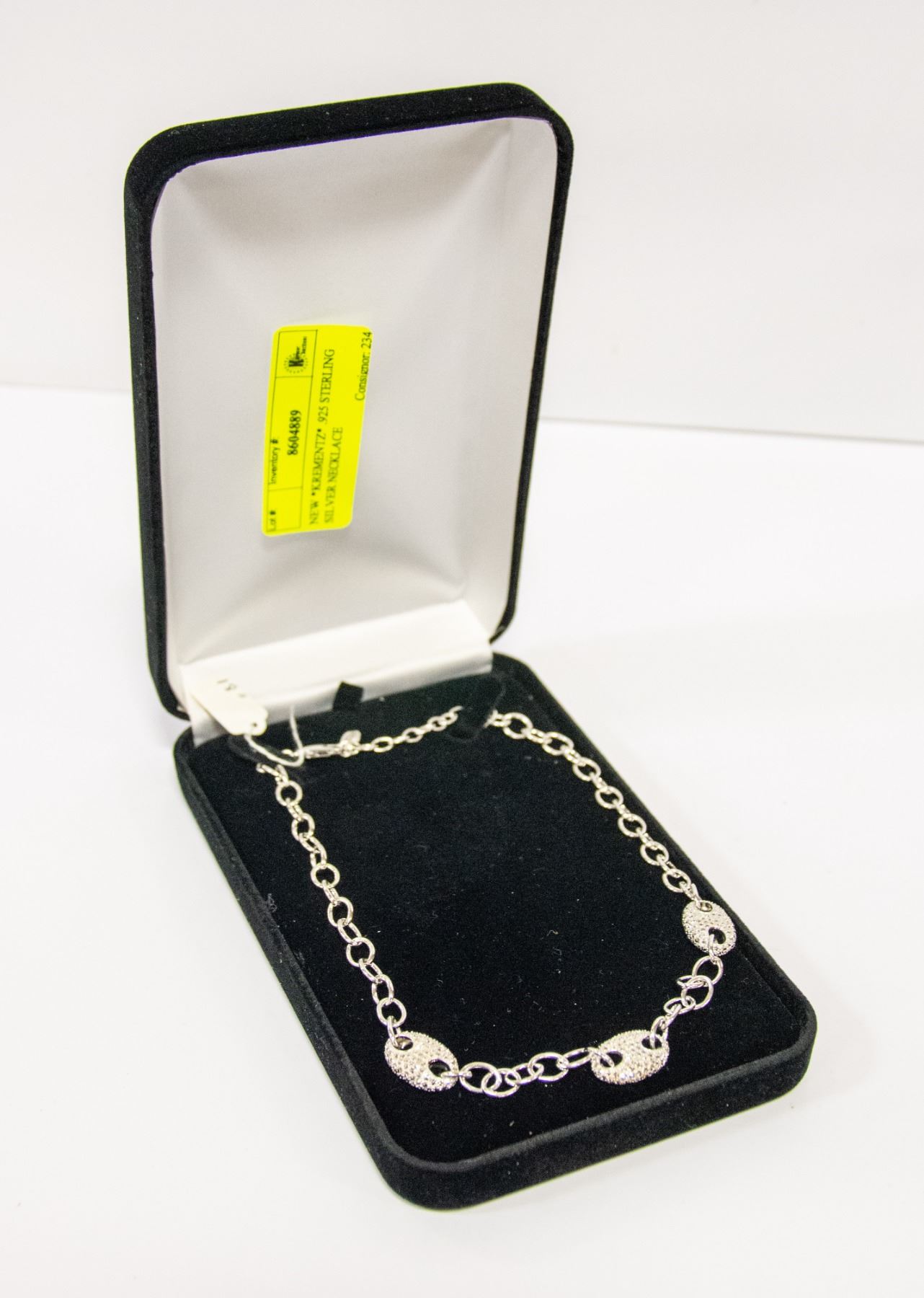 NEW *KREMENTZ* .925 STERLING SILVER NECKLACE, 16" BEAUTYFULL CRAFTED NECKLACE, WEIGHT 32.8GR, RETAIL $525.00 BLACK 4 1/2 X 7" VELVET CASE