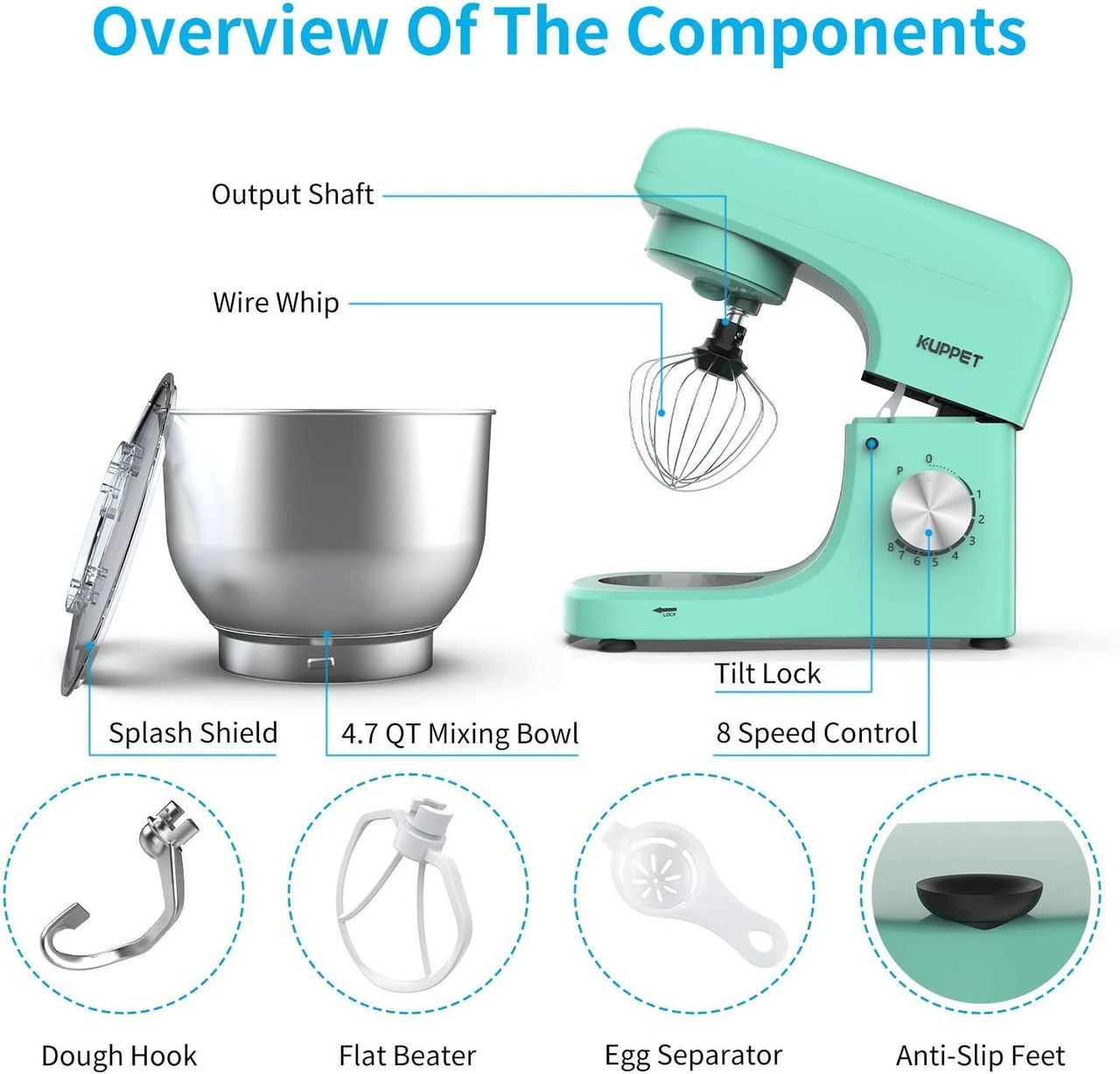 NEW KUPPET 4.7QT 8 SPEED STAND MIXER, 850W