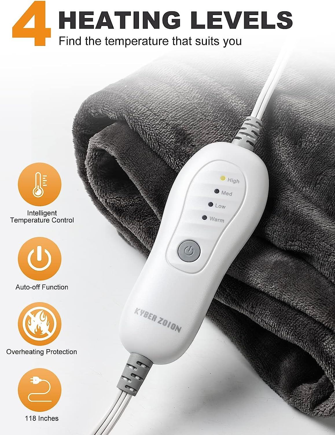 NEW KYBER ZOION 50 X 60" HEATED BLANKET, GREY