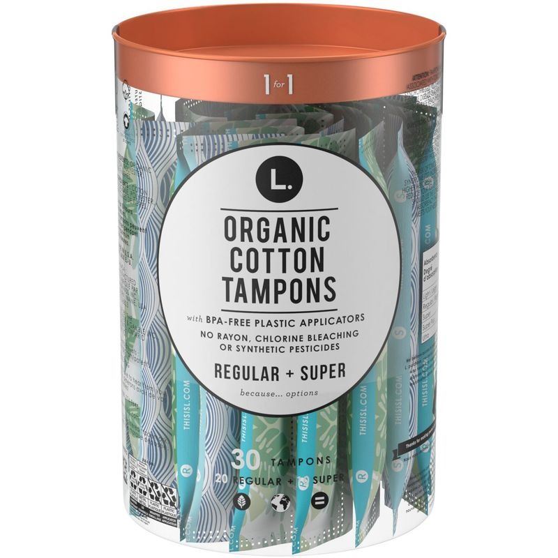 NEW L ORGANIC COTTON CORE TAMPONS 30 PACK, VARIETY
