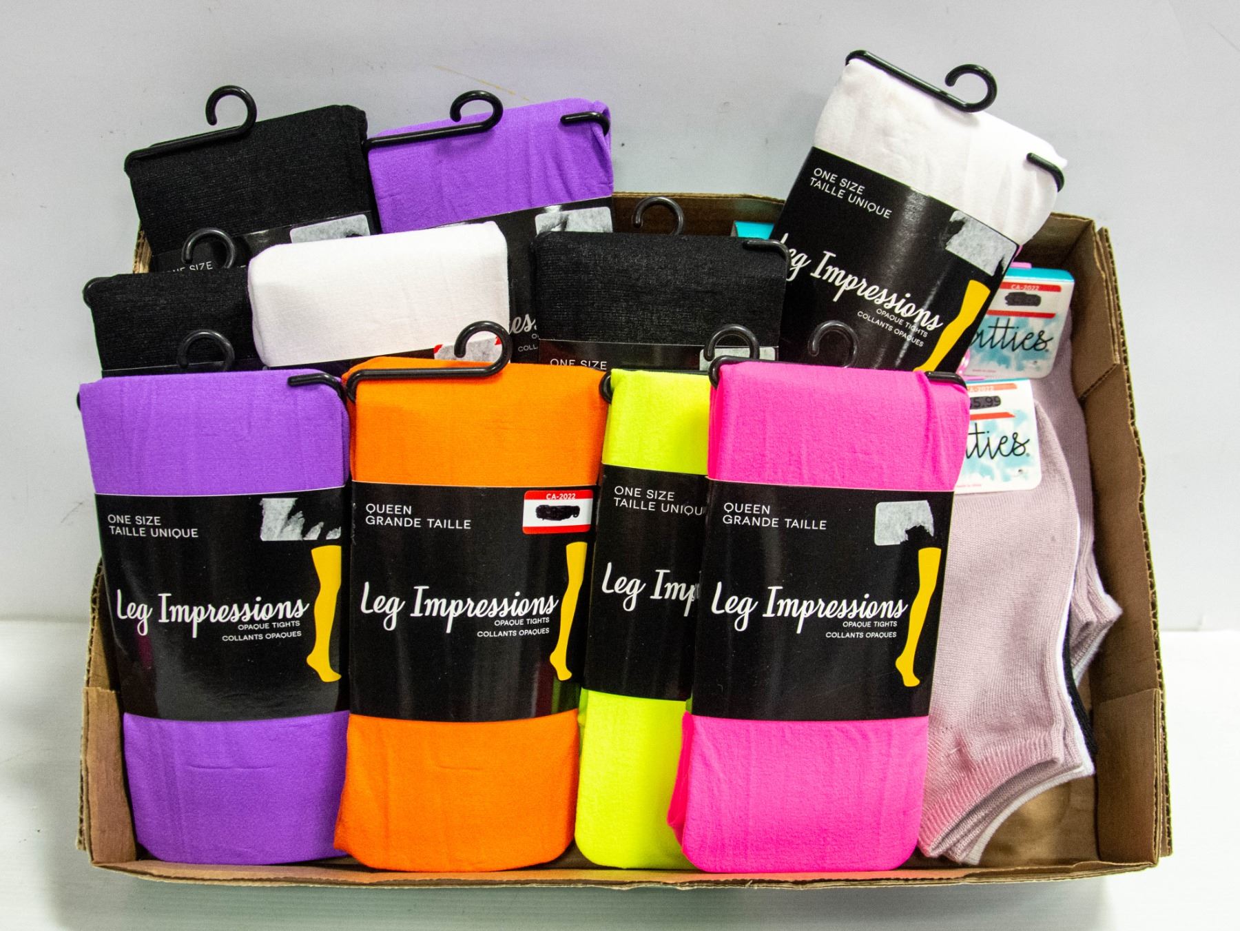 SIZE & ONE SIZE VARIETY OF COLORS W/NEW (9) PAIR SOFT CHATTIE SOCKS SIZE 9-11**ALL ITEMS MUST BE REMOVED BY 5PM MONDAY, OCTOBER 10TH, 2022. ALL REMAINING ITEMS WILL BE SUBJECT TO A $6.00 PER DAY STORAGE CHARGE. ANY ITEMS REMAINING AFTER MONDAY, OCTOBER 24TH, 2022 WILL BE CONSIDERED FORFEITED. NO REFUNDS WILL BE ISSUED FOR FORFEITED ITEMS. TO SCHEDULE A PICK UP APPOINTMENT CLICK HERE