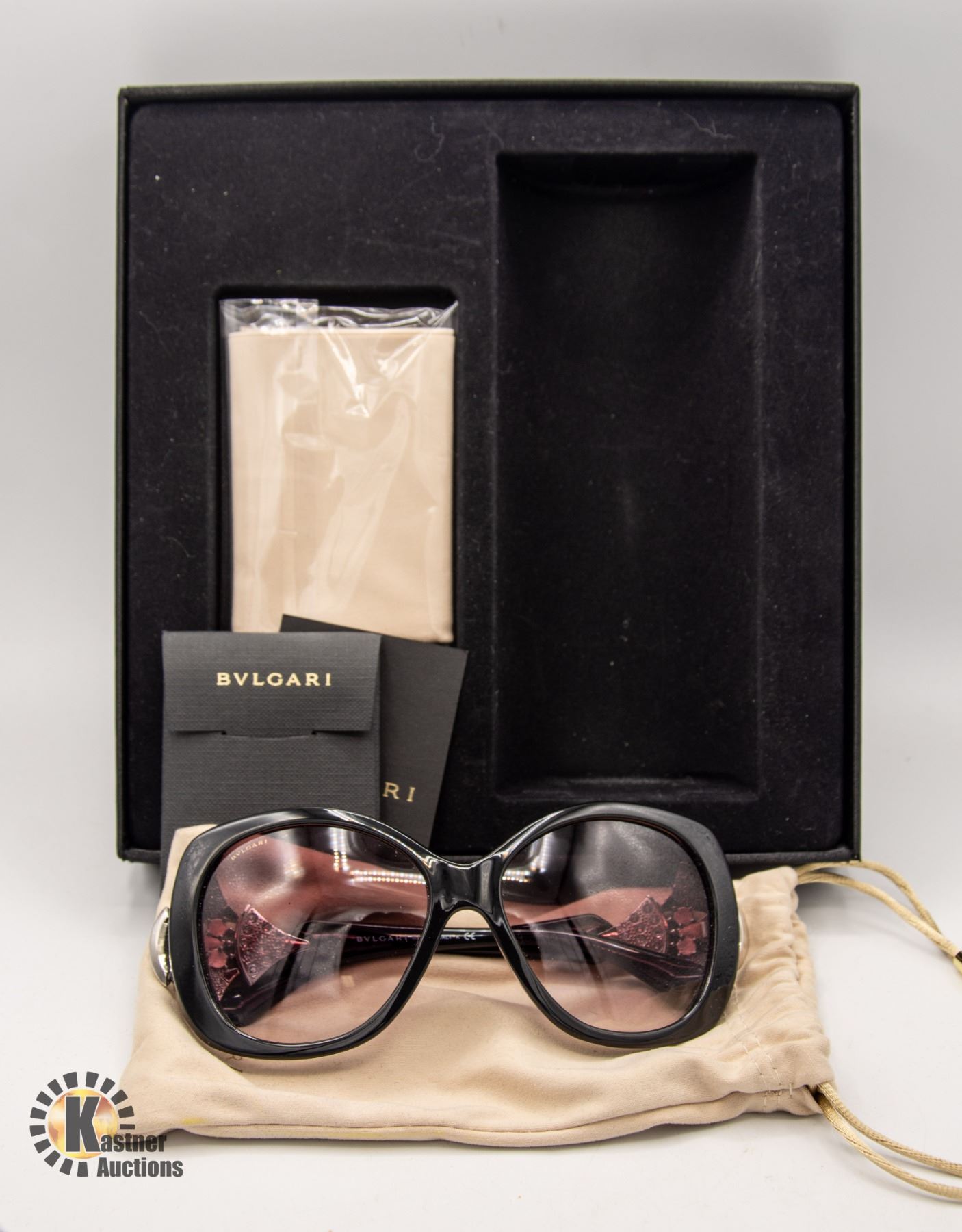 WITH SWAROVSKI CRYSTAL ON FRONT ARMS OF FRAME WITH COA, IN BVLGARI STORAGE BOX **ALL ITEMS MUST BE REMOVED BY 5PM SATURDAY, FEBRUARY 24TH 2024. ALL REMAINING ITEMS WILL BE SUBJECT TO A $6.00 PER DAY STORAGE CHARGE. ANY ITEMS REMAINING AFTER MONDAY, MARCH 11TH, 2023 WILL BE CONSIDERED FORFEITED. NO REFUNDS WILL BE ISSUED FOR FORFEITED ITEMS. TO SCHEDULE A PICK UP APPOINTMENT CLICK HERE