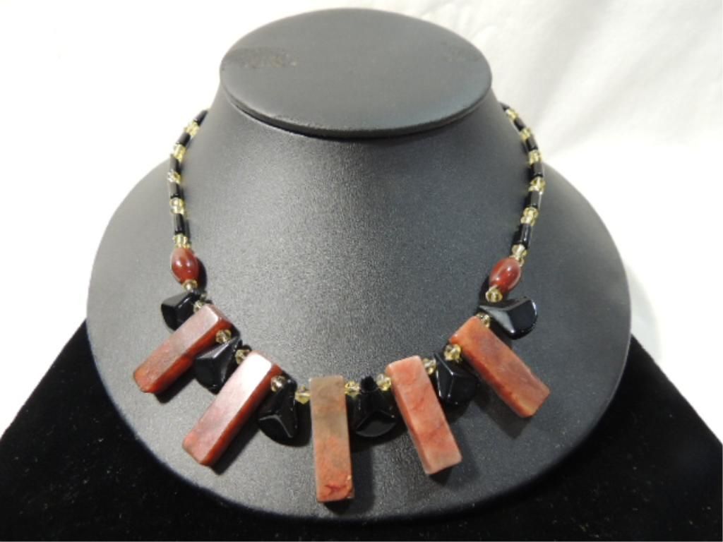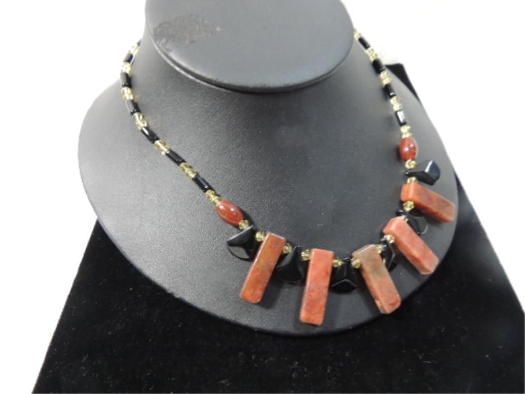 BRAND NEW DARK BEADED NECKLACE, AS SHOWN. SEE PICTURES FOR DETAILS.