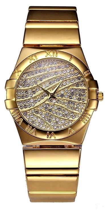 NEW LADIES ROUND SHAPED GOLD TONE CRYSTAL WATCH