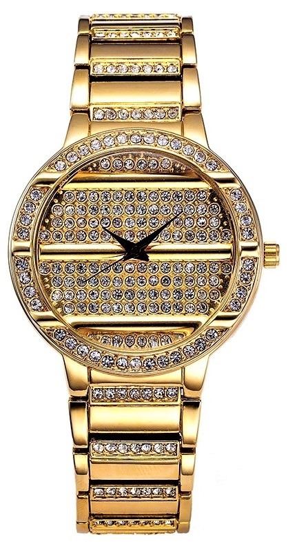 NEW LADIES ROUND SHAPED GOLD TONE CRYSTAL WATCH