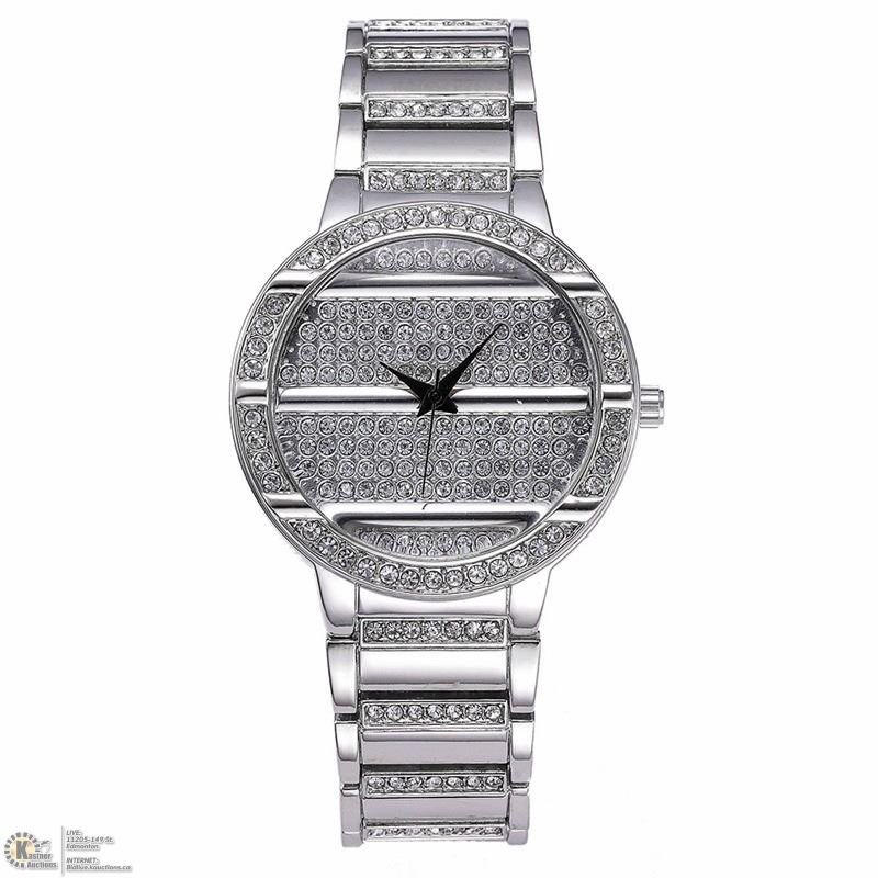 NEW LADIES ROUND SHAPED SILVER TONE CRYSTAL WATCH