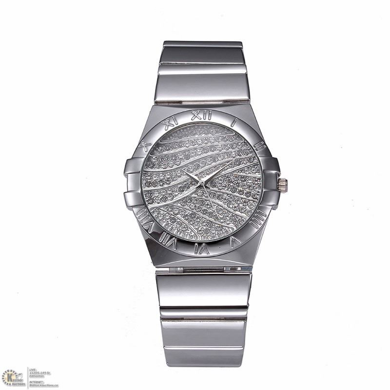 NEW LADIES ROUND SHAPED SILVER TONE CRYSTAL WATCH