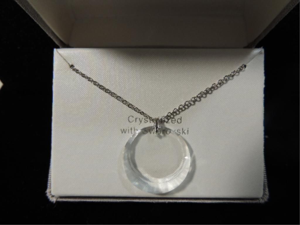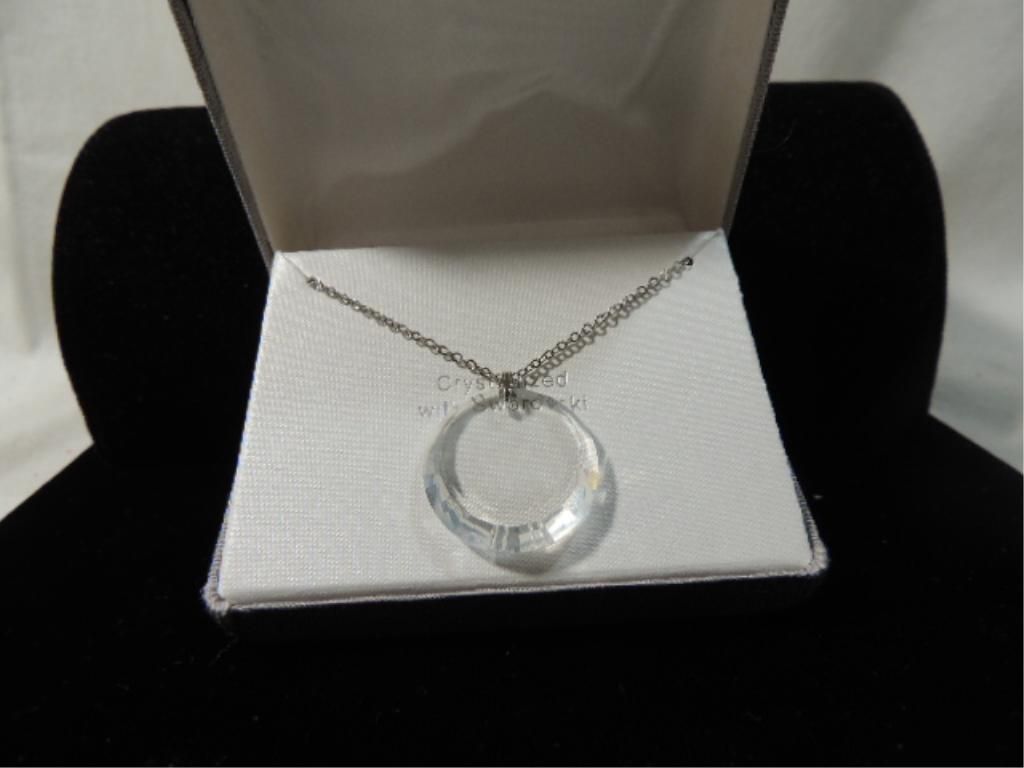 STUNNING SWAROVSKI CRYSTAL ROUND PENDENT NECKLACE. SILVER CHAIN. AS SHOWN. SEE PHOTO FOR MORE DETAILS.