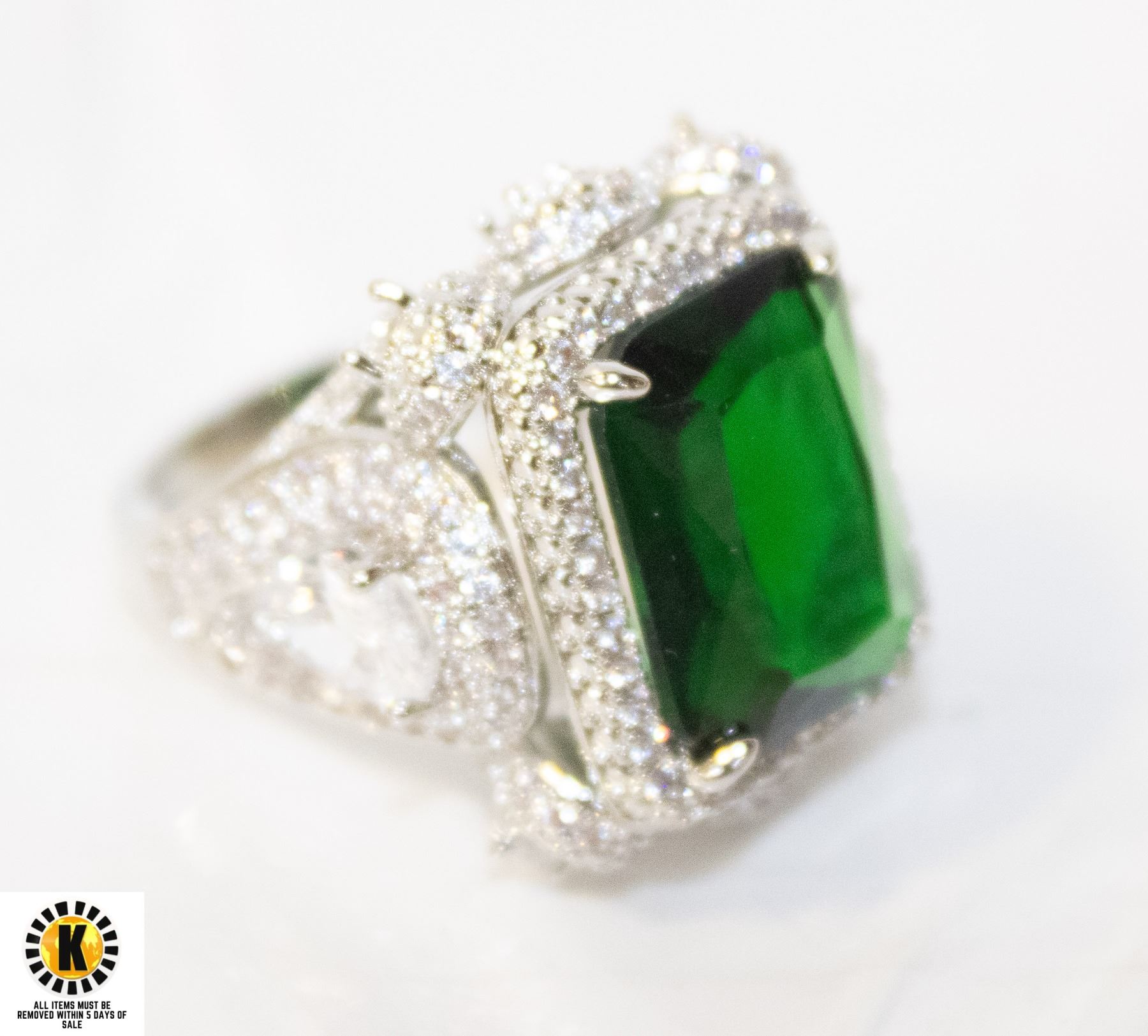 NEW LARGE GREEN MIDDLE STONE RING SIZE 7