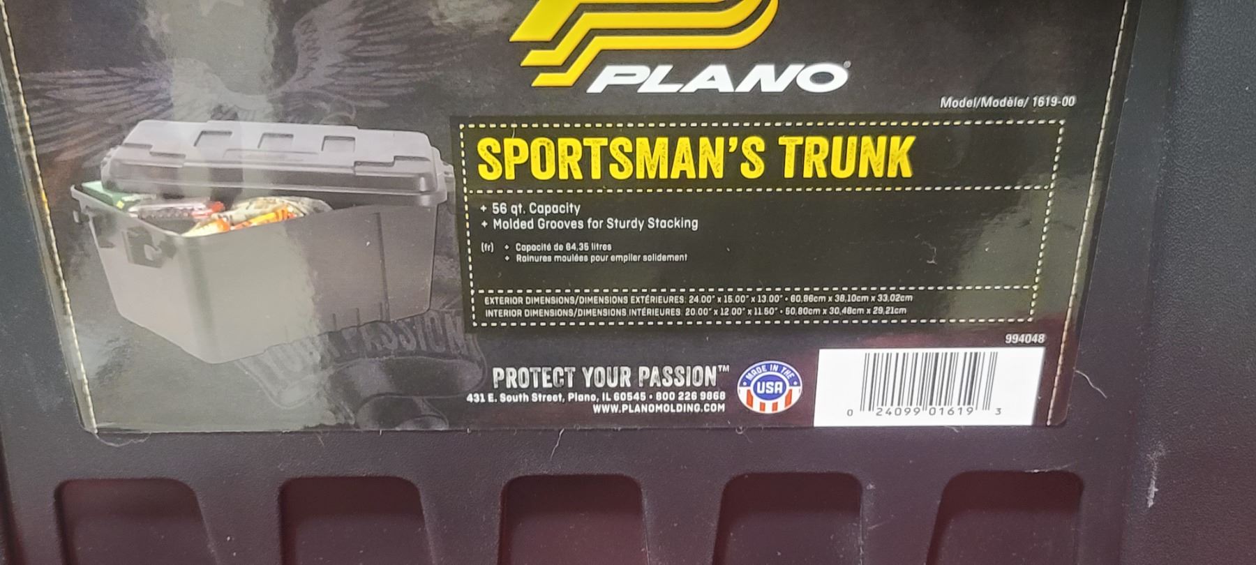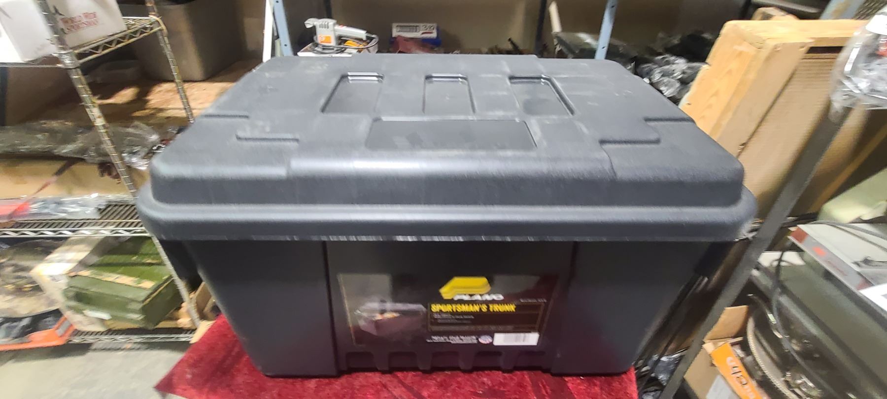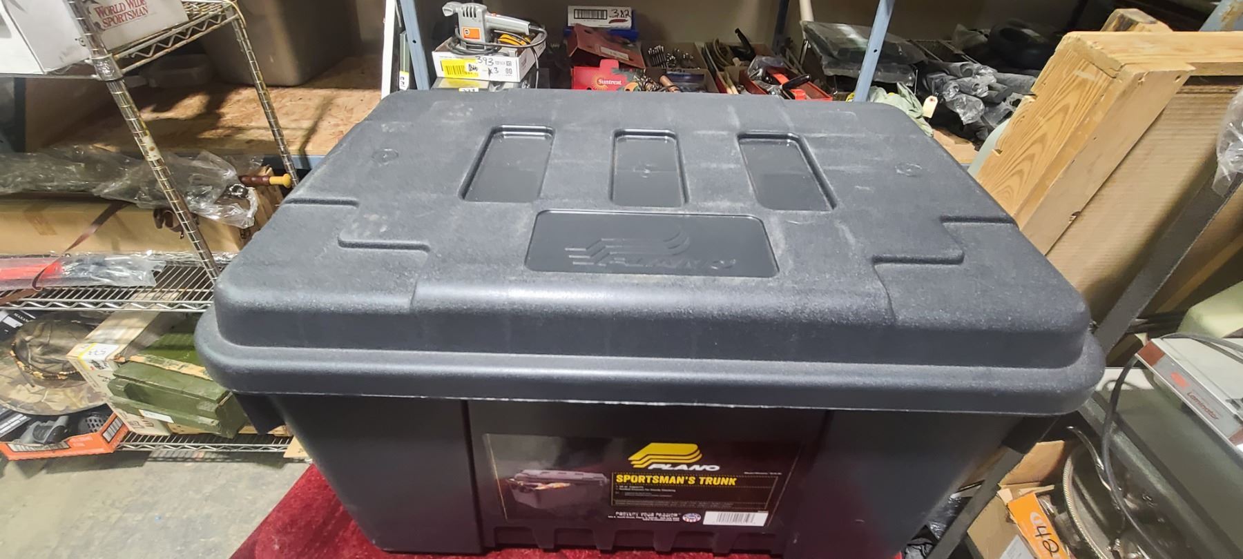 NEW LARGE PLASTIC STORAGE TOTE C/W LID AND HANDLES