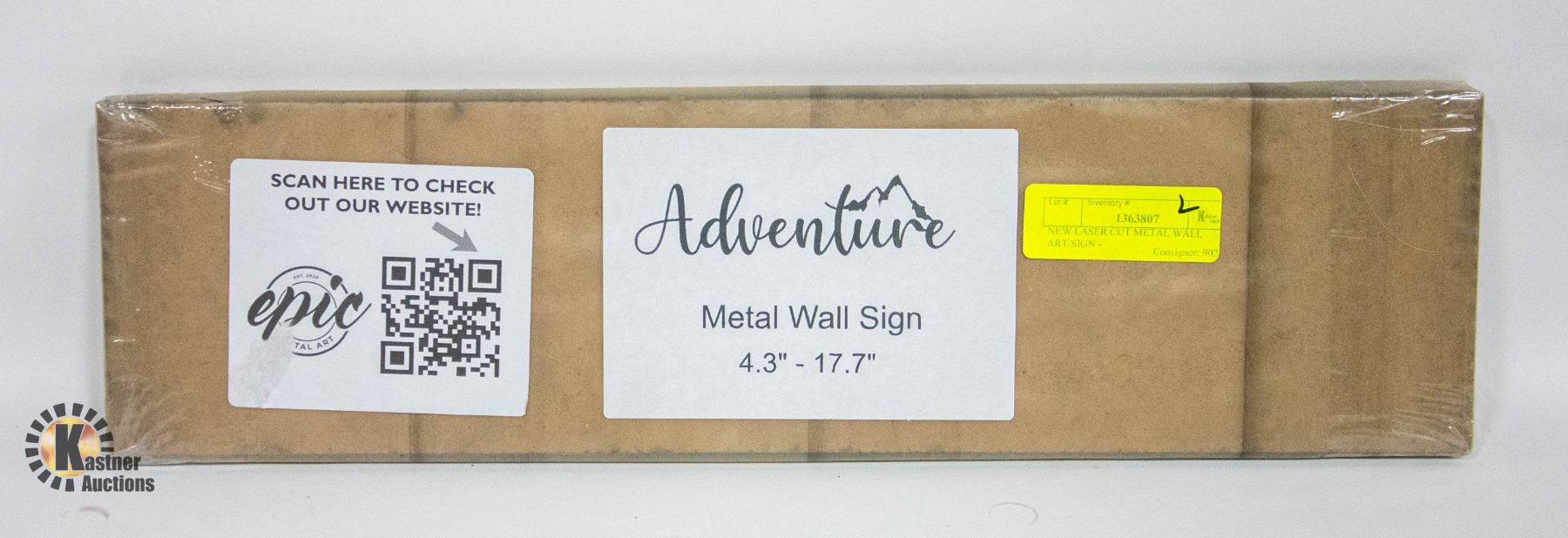 "ADVENTURE" - BLACK METAL, EASY HANG (17.7"L X 4.3"H) - NEW DISPLAYED SAMPLE **ALL ITEMS MUST BE REMOVED BY 5PM SATURDAY, NOVEMBER 30TH 2024. ALL REMAINING ITEMS WILL BE SUBJECT TO A $6.00 PER DAY STORAGE CHARGE. ANY ITEMS REMAINING AFTER MONDAY, DECEMBER 16TH 2024 WILL BE CONSIDERED FORFEITED. NO REFUNDS WILL BE ISSUED FOR FORFEITED ITEMS. TO SCHEDULE A PICK UP APPOINTMENT CLICK HERE