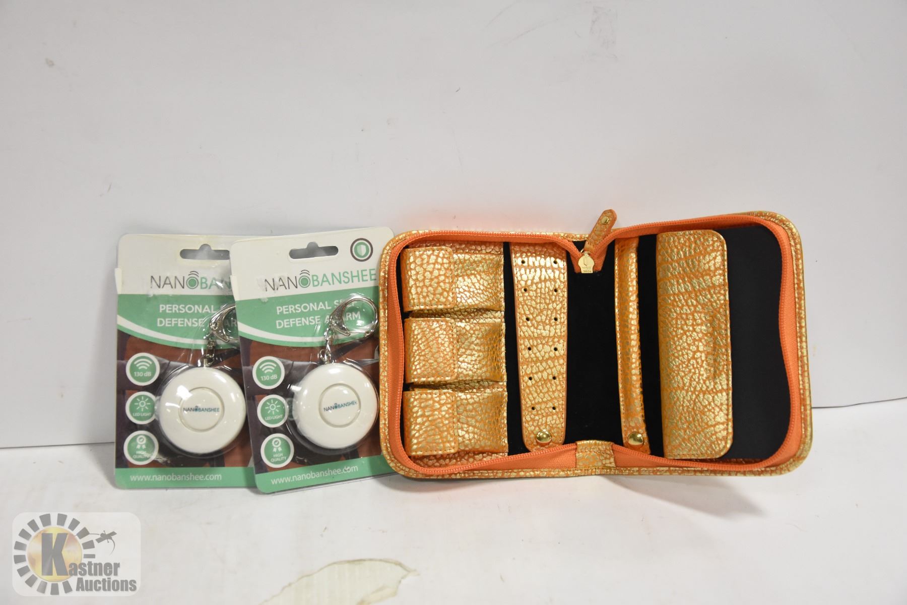 JEWELRY CASE "ORANGE POPCORN" W/TAG & SEALED (2) PERSONAL ALARM KEYCHAINS