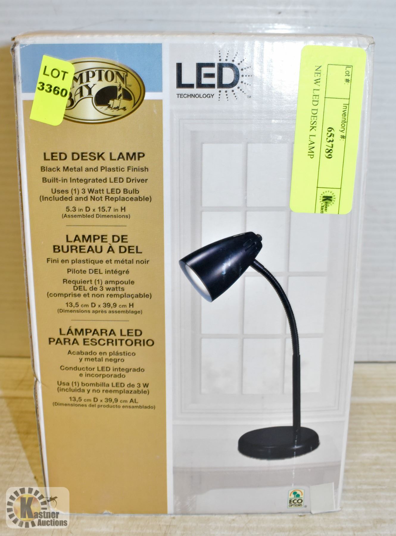 NEW IN BOX BLACK LED DESK LAMP. DIMENSIONS ARE 5.3"D X 15.7" H