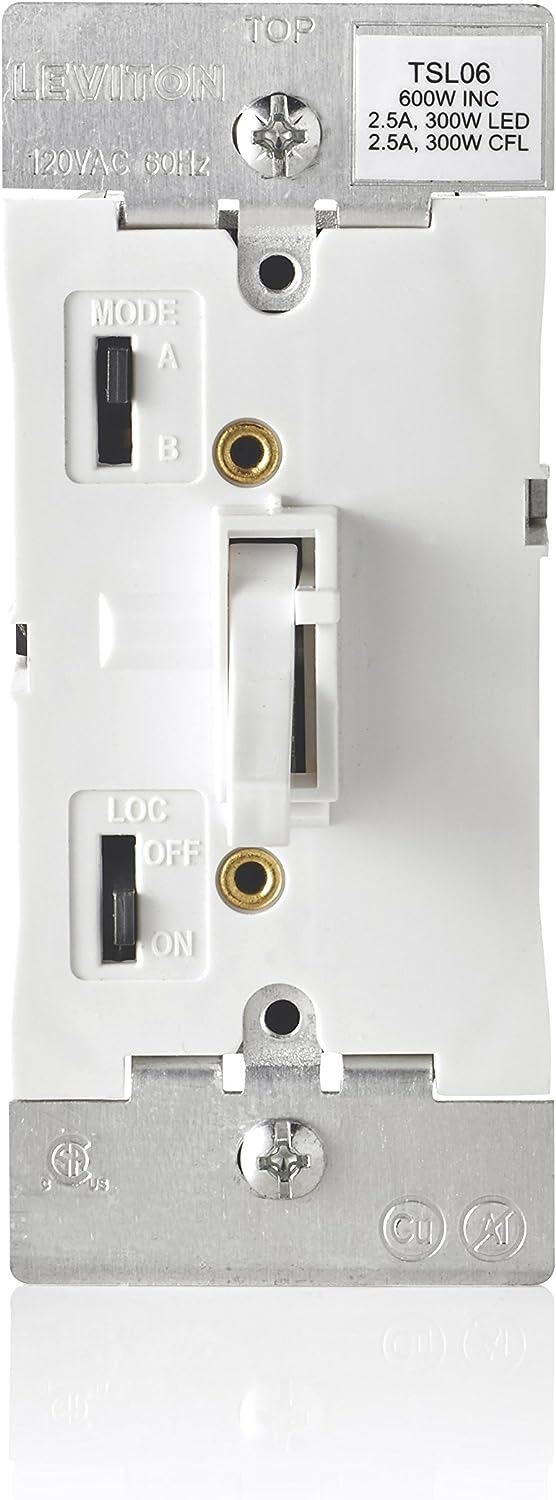 300 WATT DIMMABLE LED AND CFL, SINGLE POLE OR 3 WAY. 1 PACK, WHITE. MODEL TSL06-1LW. AMZ SES