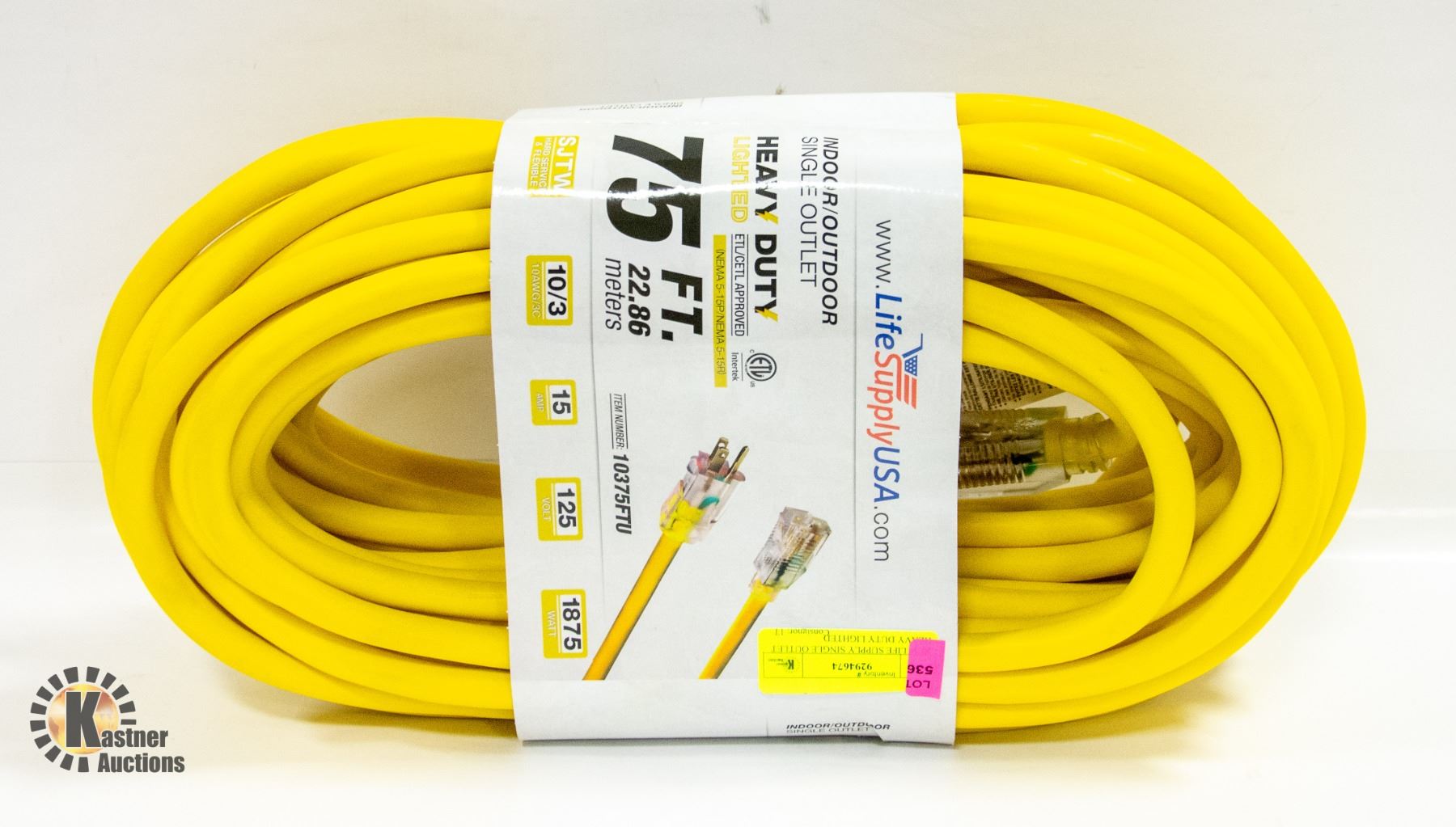 75 FOOT EXTENSION CORD - 10AWG / 3C , 15 AMP, 125V, 1875 WATTS