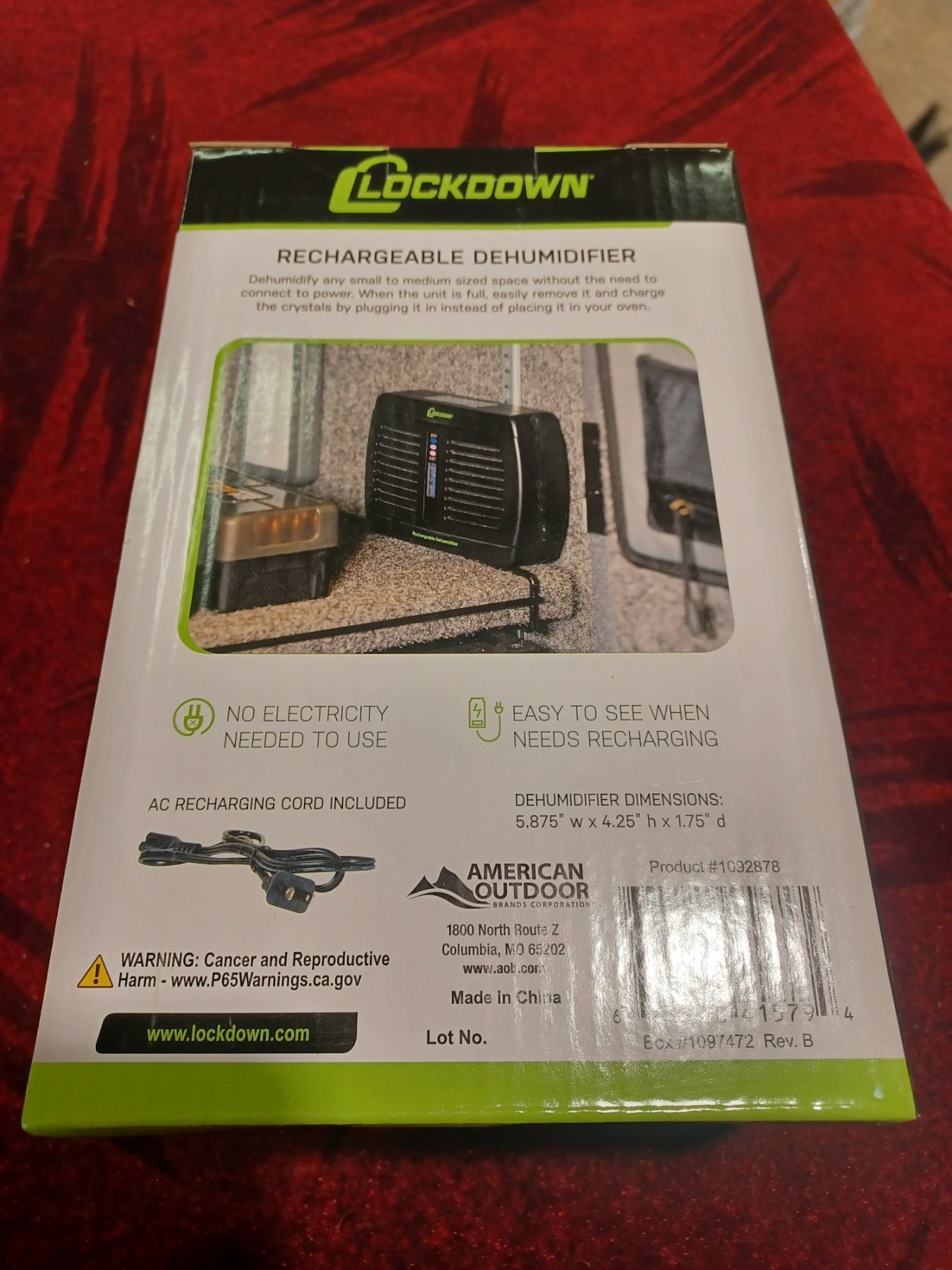 NEW LOCK DOWN RECHARGEABLE DEHUMIDIFIER FOR VAULTS AND CLOSETS