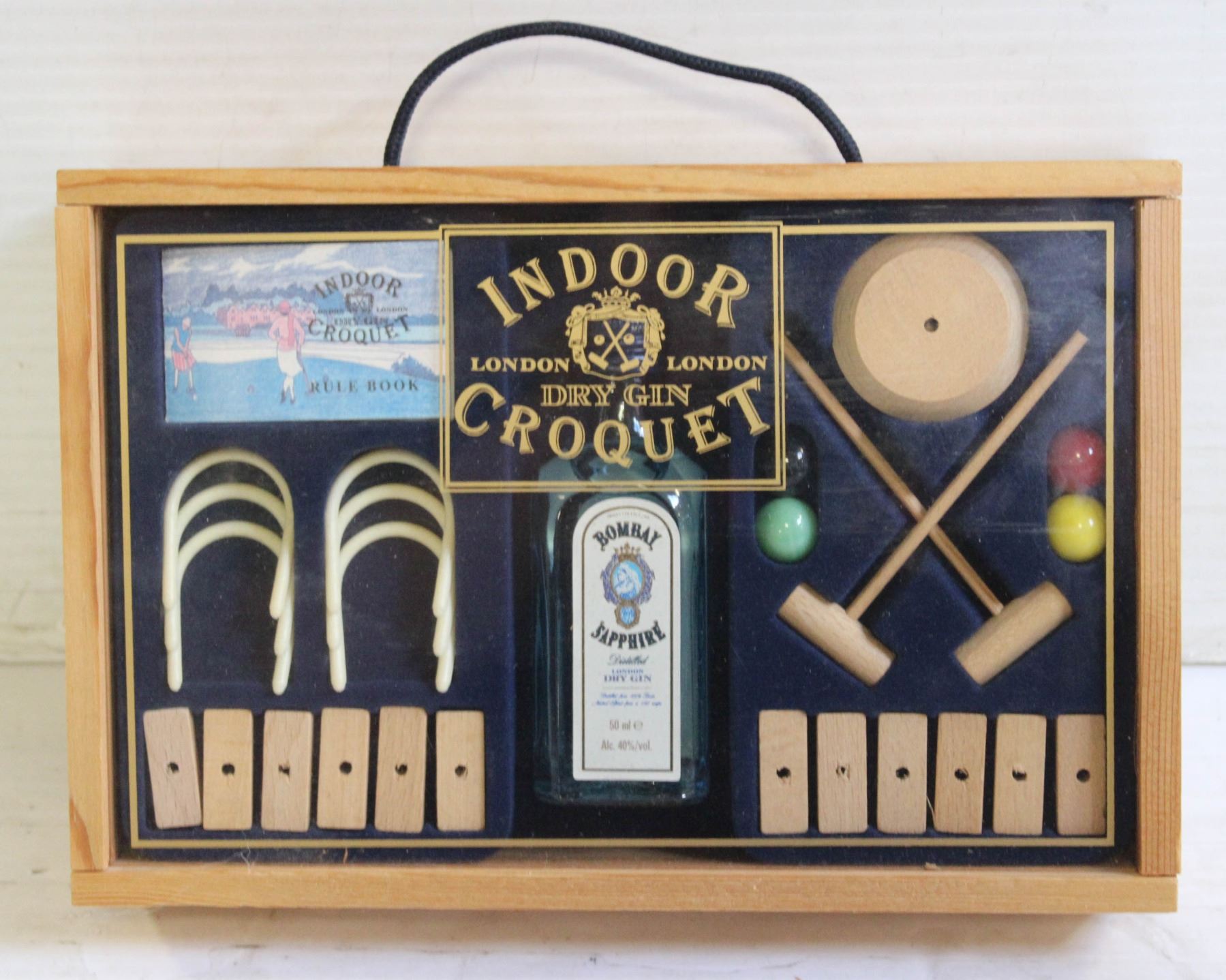 DESK TOP CROQUET IN WOOD BOX W/ 50 ML DRY GIN