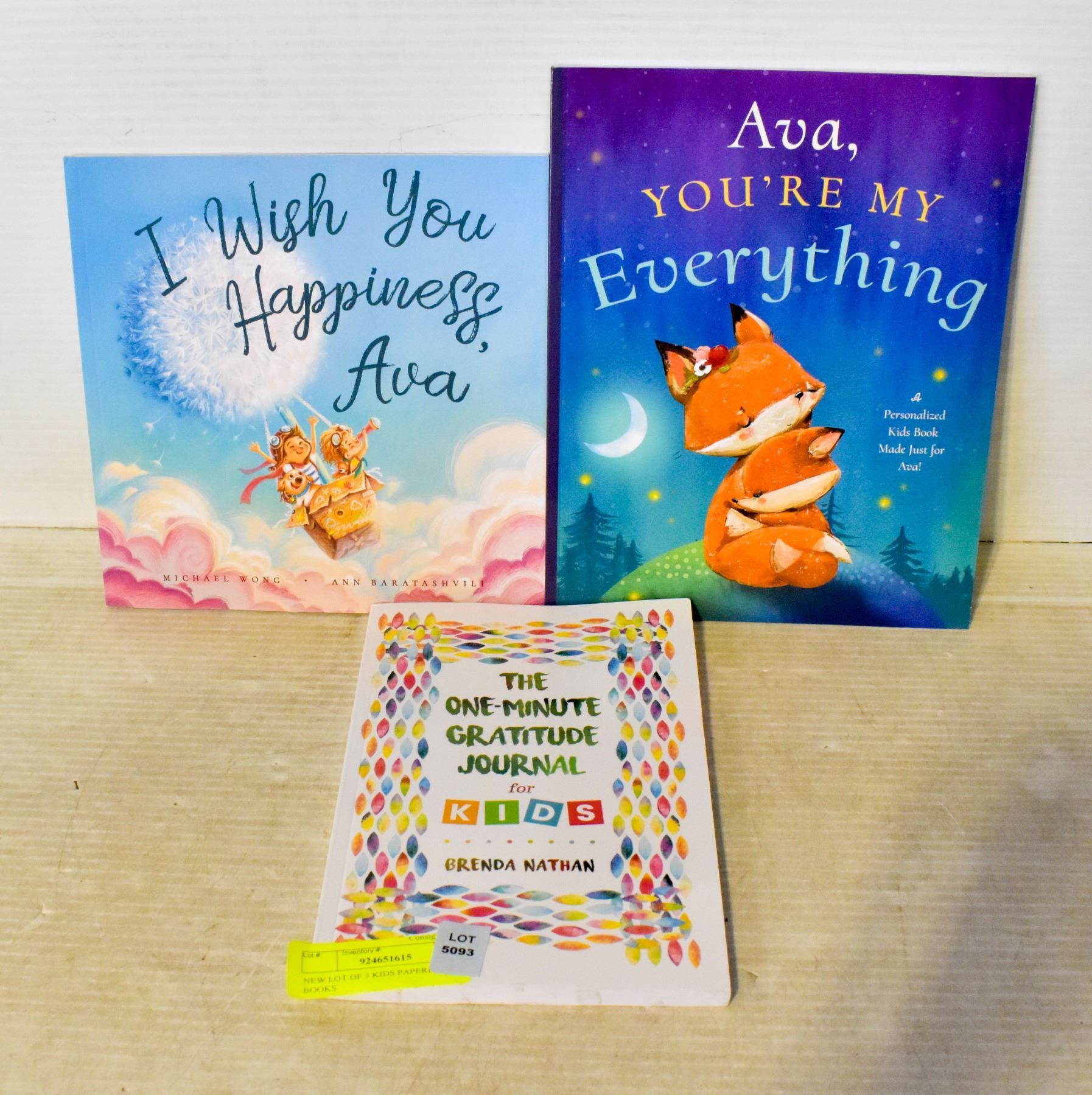 THE ONE MINUTE GRATITUDE JOURNAL FOR KIDS BY BRENDA NATHAN, I WISH YOU HAPPINESS AVA BY MICHAEL WONG AND ANN BARATASHVILI, AVA YOU'RE MY EVERYTHING, AMZ SES