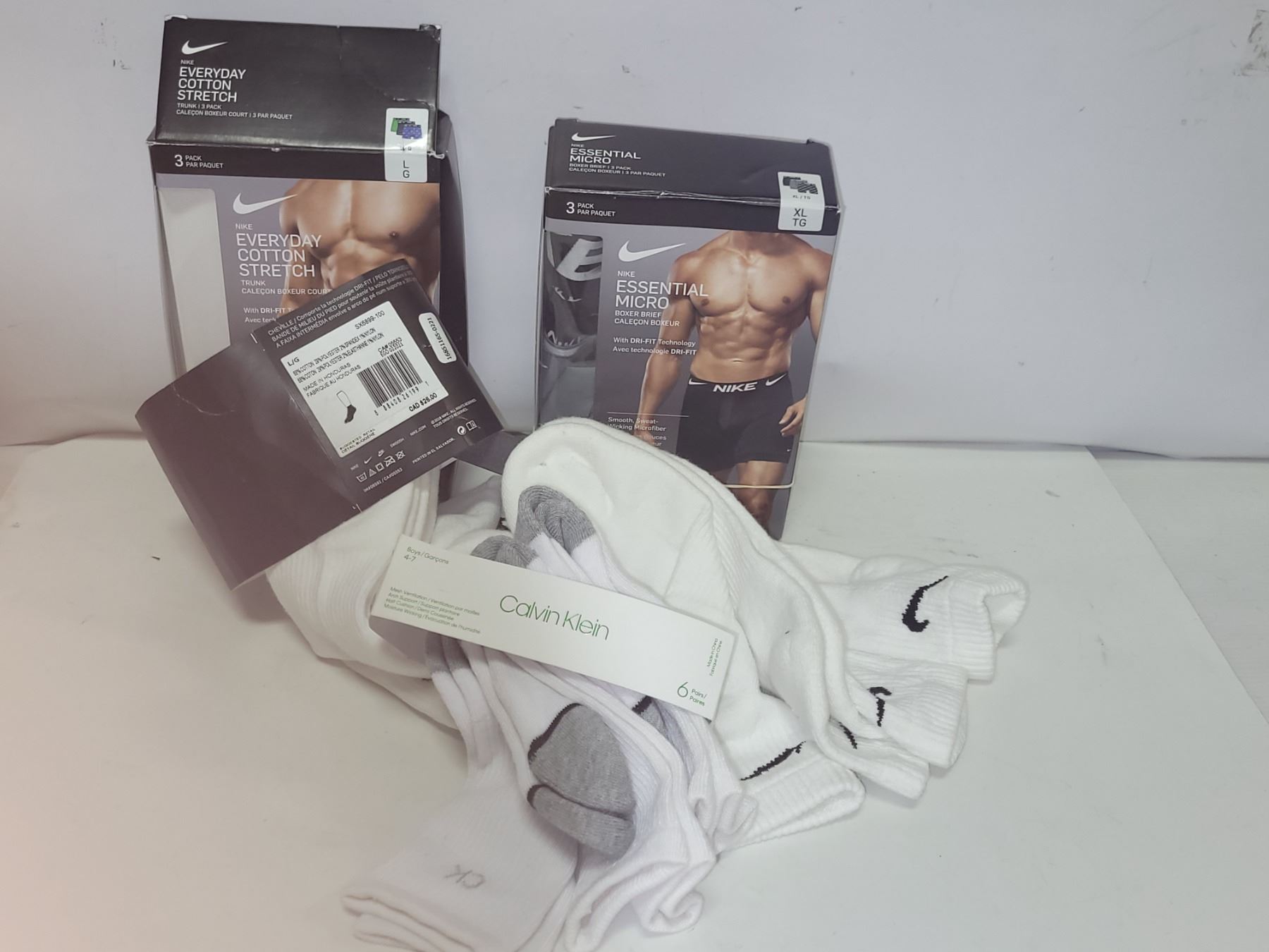 NIKE UNDERWEAR & SOCKS. LARGE, EXTRA LARGE, SOCKS 8-12, BOYS 4-7. HBC SES **ALL ITEMS MUST BE REMOVED BY 5PM SATURDAY, DECEMBER 10TH 2022. ALL REMAINING ITEMS WILL BE SUBJECT TO A $6.00 PER DAY STORAGE CHARGE. ANY ITEMS REMAINING AFTER MONDAY, DECEMBER 25TH, 2022 WILL BE CONSIDERED FORFEITED. NO REFUNDS WILL BE ISSUED FOR FORFEITED ITEMS. TO SCHEDULE A PICK UP APPOINTMENT CLICK HERE