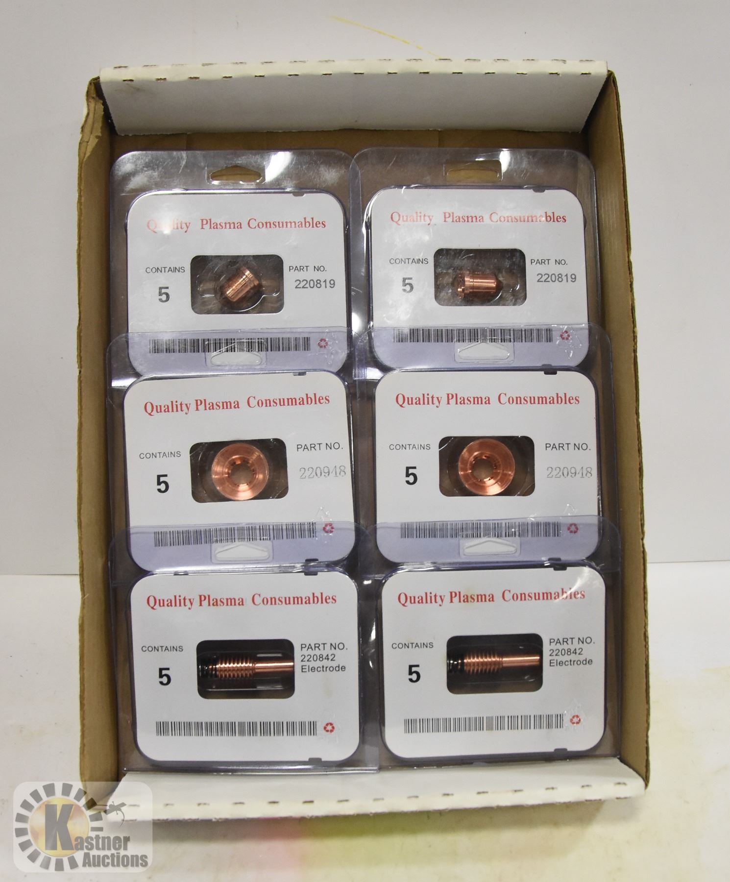5 PIECES IN EACH BOX, 2 X ELECTRODES PART NO. 220842, 2 X TORCH TIPS PART NO. 220819 AND 2 X FINE CUT OHMIC SHIELD PART NO. 220948, 30 PIECES IN TOTAL, AMZ SES
