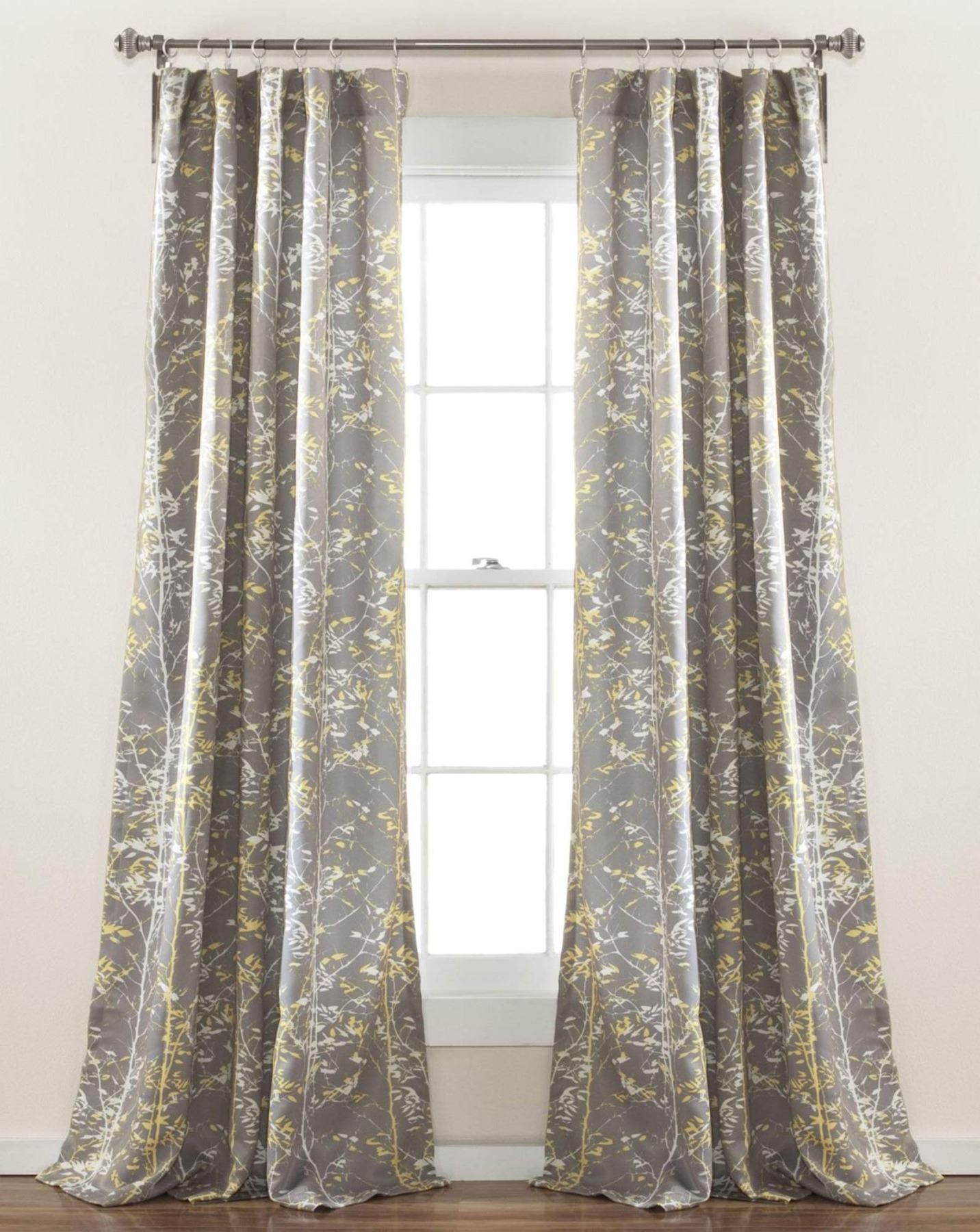 NEW LUSH DECOR FOREST GRAY YELLOW CURTAIN
