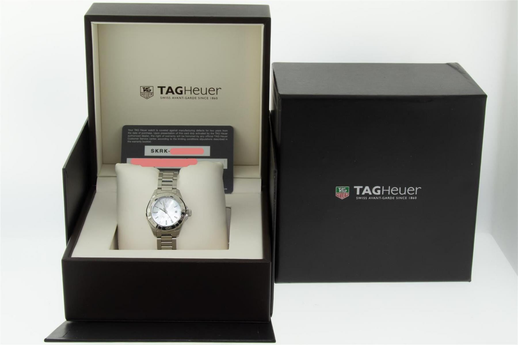 One New Ladies Tag Heuer Stainless Steel Aquaracer. This Watch Is Brand New, Stainless Steel Case: 27mm, Tag Heuer Stainless Steel Crown. Tag Heuer Bezel: Stainless Steel Rotating Bezel, Tag Hehuer Crystal: Sapphire Crystal. Tag Heuer Hands: Tag Heuer Lum