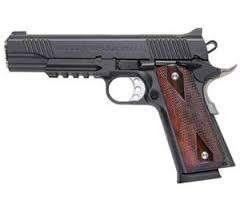FAMILY:1911 Style Pistol Series MODEL:Desert Eagle 1911 TYPE:Semi-Auto Pistol ACTION:Single Action FINISH:Matte Black STOCK/FRAME:Steel Frame STOCK/GRIPS:Checkered Wood Grips CALIBER/GAUGE:45 ACP # OF MAGS:2 MAGAZINE DESC:8 rd. BARREL:5" OVERALL LENGTH:8.625" SAFETY:Extended Thumb Safety ADDL INFO:Skeletonized Hammer ADDL INFO:Extended Mag Release ADDL INFO:Tactical Rail