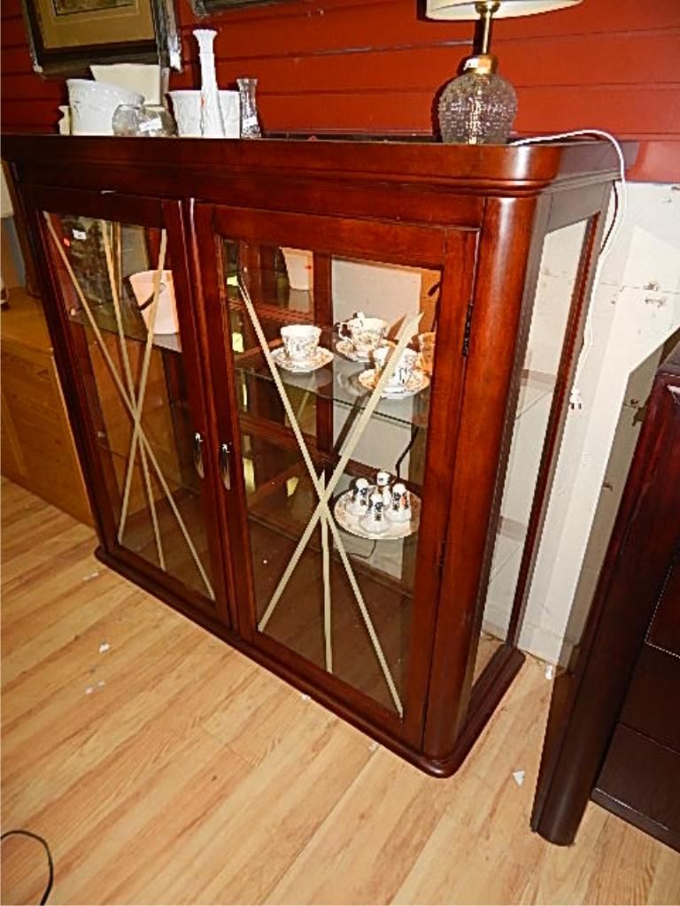 NEW MAHOGANY CHINA CABINET - TAPE ON GLASS FOR SHIPPING