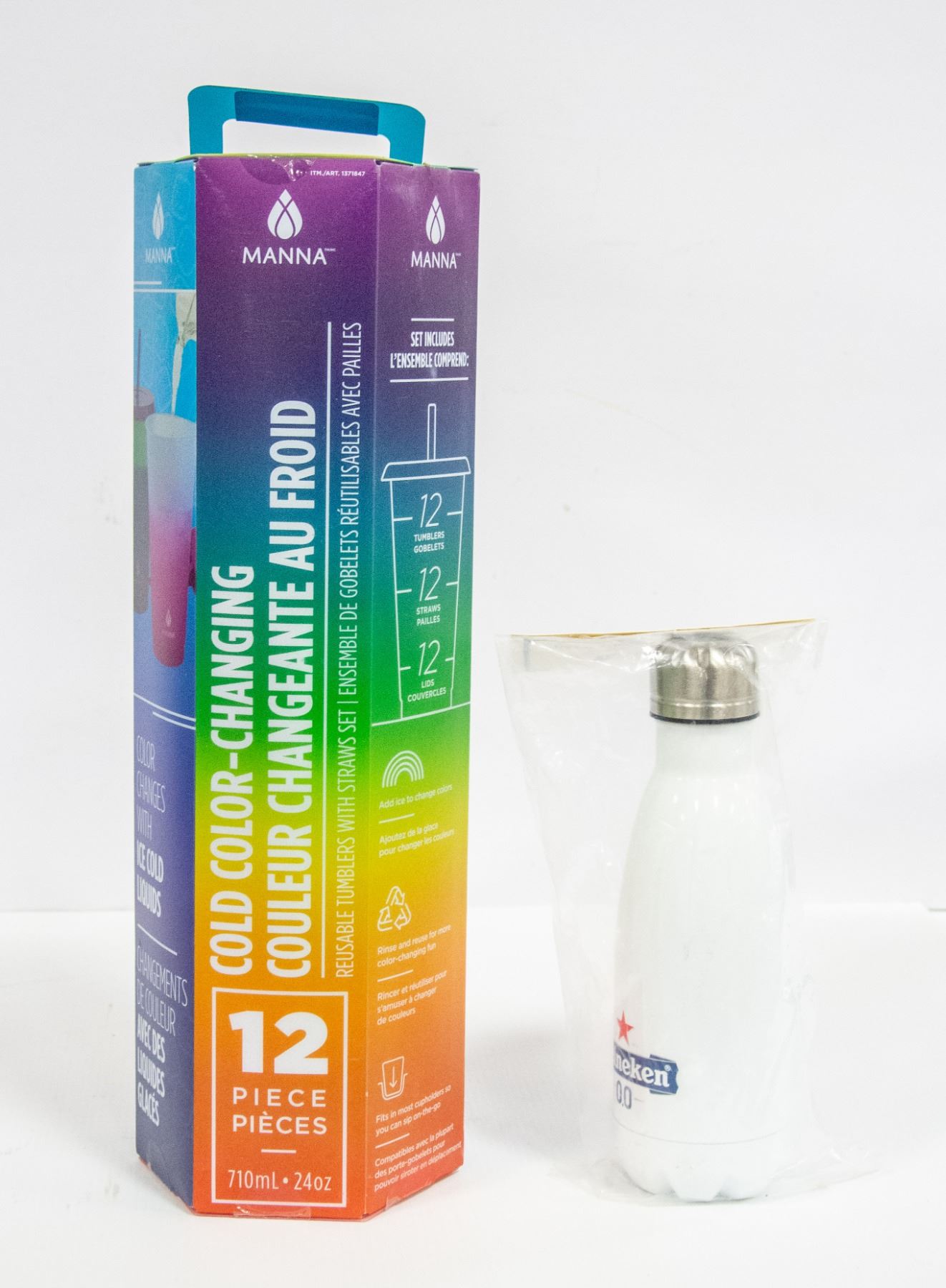 TUMBLERS WITH STRAWS 12 PACK W/SEALED HEINEKEN BEER PROMO ALUMINUM WATER BOTTLE