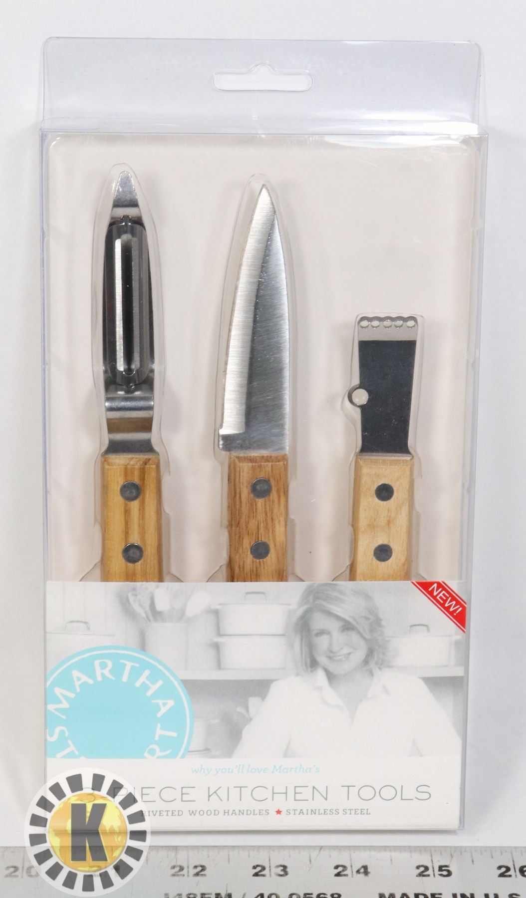 RIVETED WOOD HANDLES, STAINLESS STEEL.