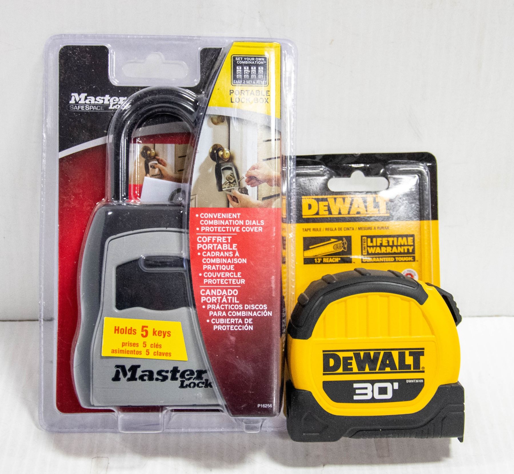 BOX HOLDS 5 KEYS W/NEW DEWALT TAPE MEASURE 30"