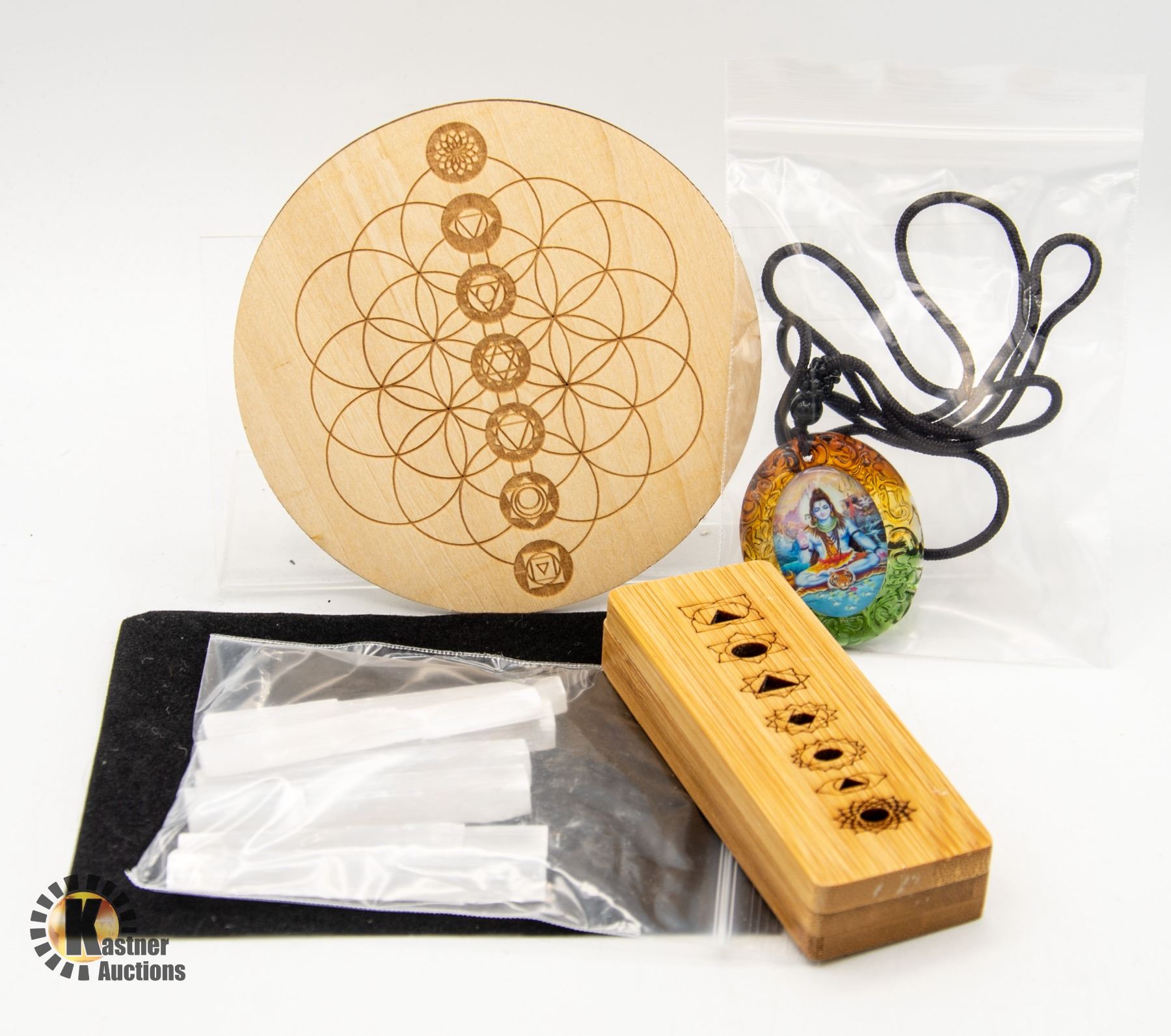 RAIKI HEALING NECKLACE, WOODEN PLAQUE & MAGNETIC LIDDED STORAGE BOX FOR GEMSTONES **ALL ITEMS MUST BE REMOVED BY 5PM SATURDAY, APRIL 8TH 2023. ALL REMAINING ITEMS WILL BE SUBJECT TO A $6.00 PER DAY STORAGE CHARGE. ANY ITEMS REMAINING AFTER MONDAY, APRIL 23RD, 2023 WILL BE CONSIDERED FORFEITED. NO REFUNDS WILL BE ISSUED FOR FORFEITED ITEMS. TO SCHEDULE A PICK UP APPOINTMENT CLICK HERE
