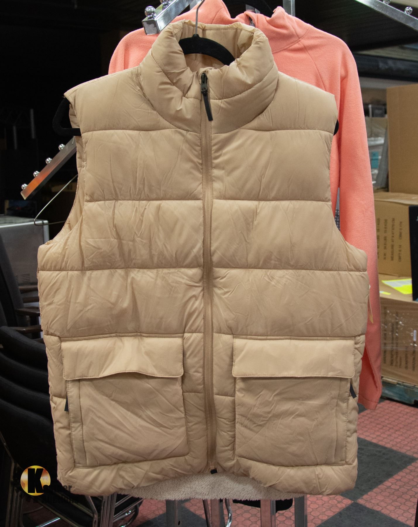 NEW MEDIUM BROWN SLEEVELESS PUFFER VEST