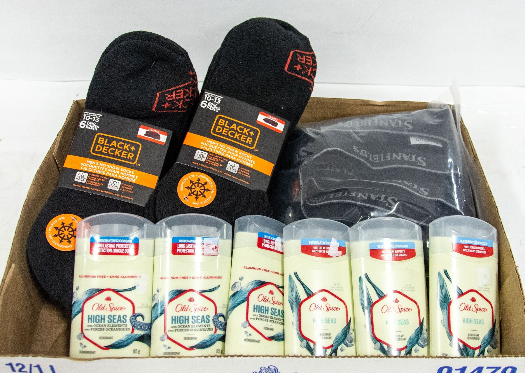 HIGH SEAS W/6 STANFIELDS COTTON STRETCH BRIEFS SIZE MED & 12 PAIR BLACK & DECKER SOCKS SIZE 10-13 **ALL ITEMS MUST BE REMOVED BY 5PM SATURDAY, JANUARY 7TH 2022. ALL REMAINING ITEMS WILL BE SUBJECT TO A $6.00 PER DAY STORAGE CHARGE. ANY ITEMS REMAINING AFTER MONDAY, JANUARY 22ND, 2022 WILL BE CONSIDERED FORFEITED. NO REFUNDS WILL BE ISSUED FOR FORFEITED ITEMS. TO SCHEDULE A PICK UP APPOINTMENT CLICK HERE