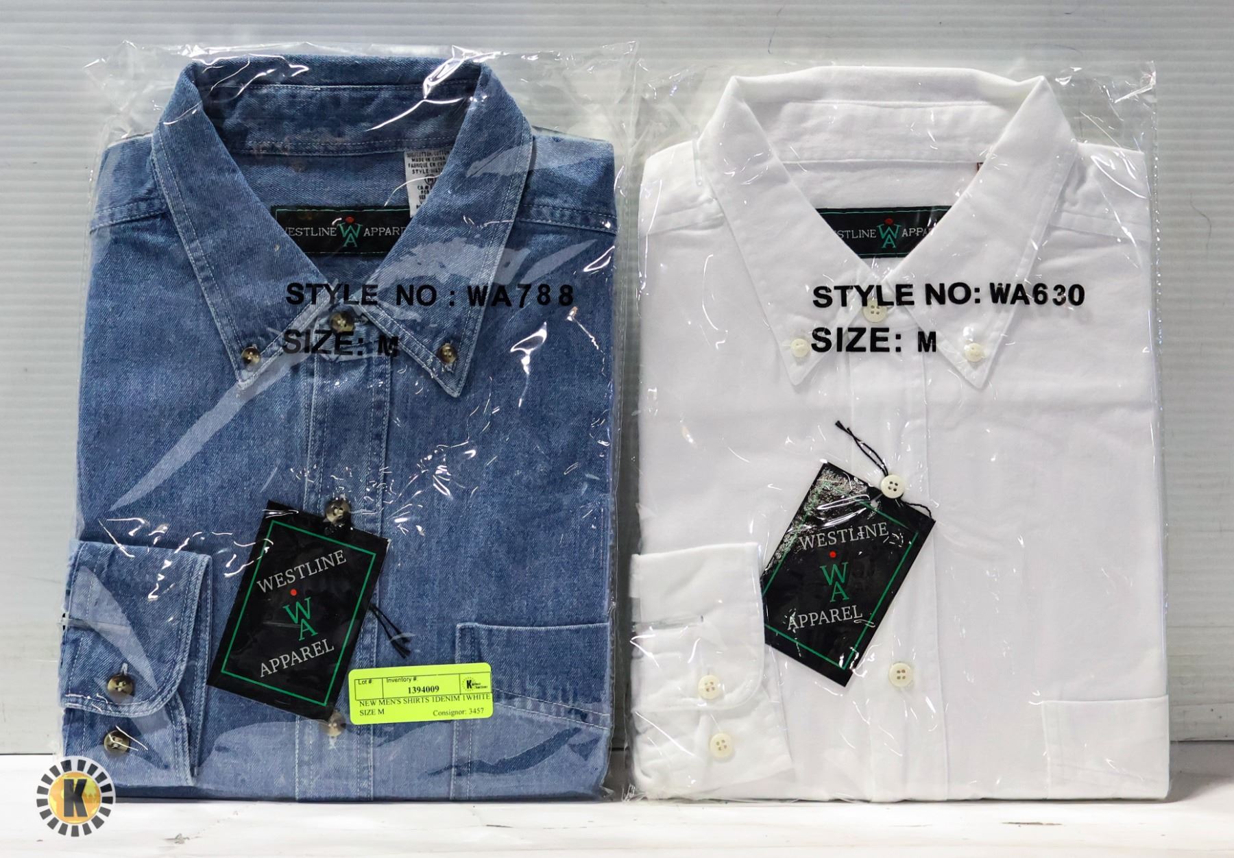 NEW MEN'S SHIRTS 1 DENIM 1 WHITE SIZE M