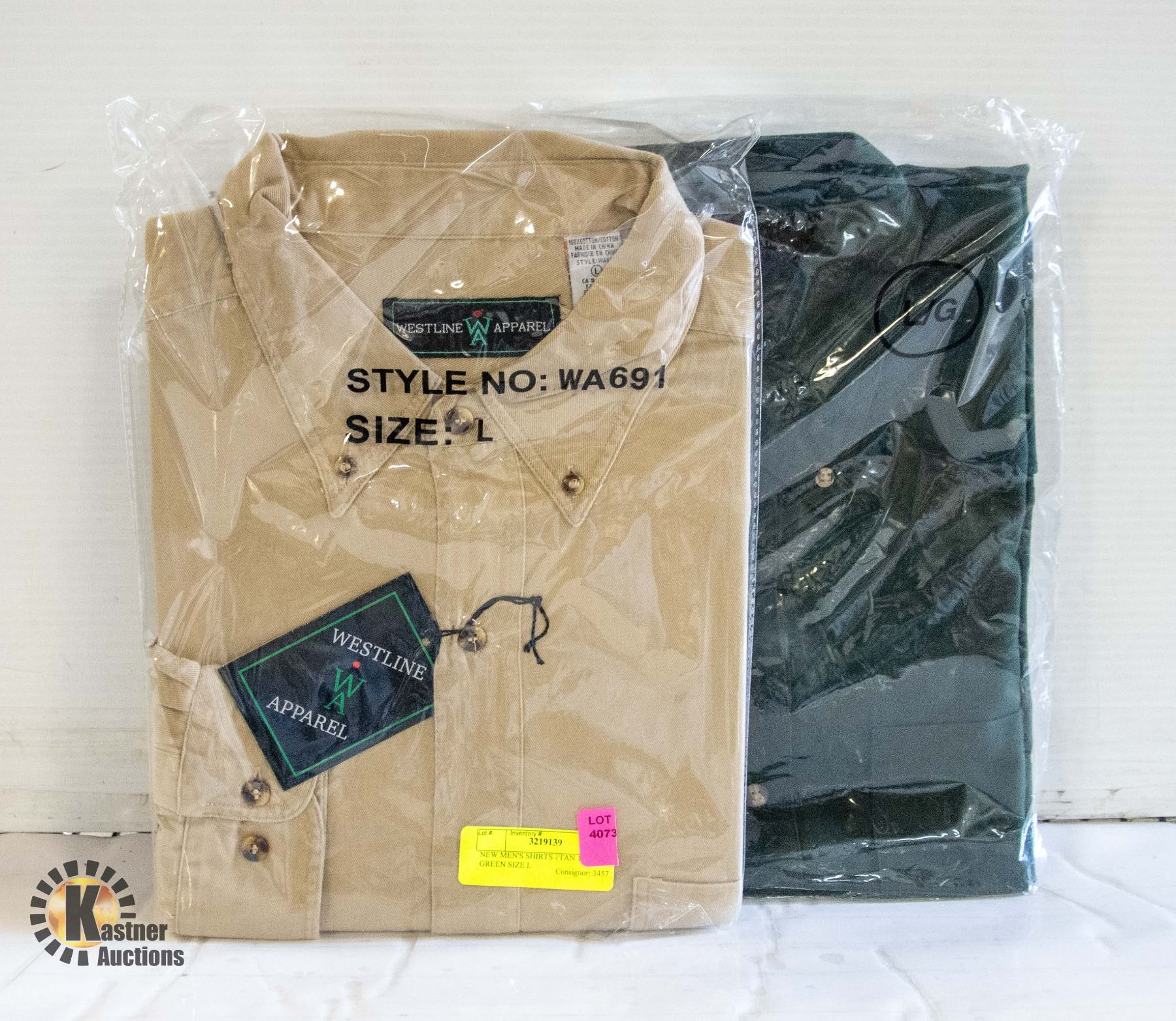 NEW MEN'S SHIRTS 1TAN 1FOREST GREEN SIZE L