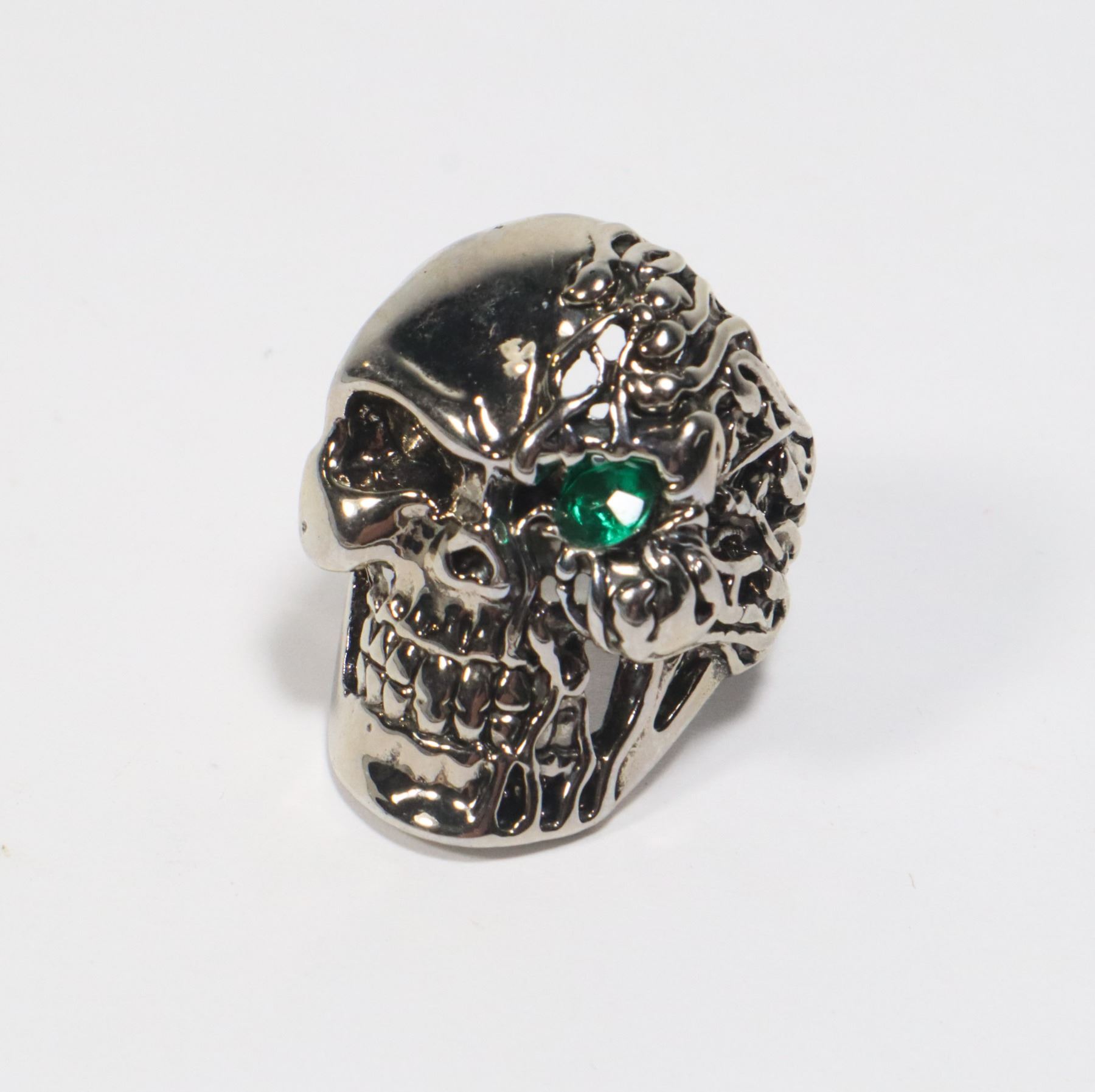 NEW MEN'S SKULL RING, WITH GREEN ACCENT IN EYE
