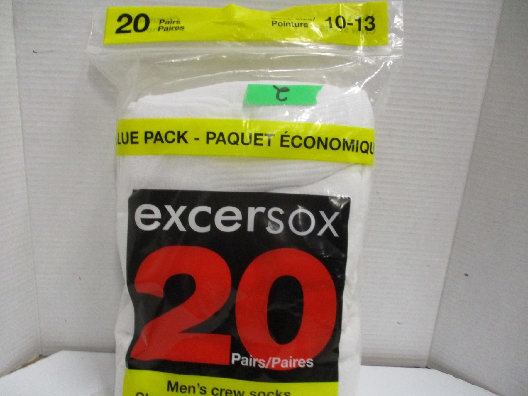 NEW: MEN'S WHITE CREW SOCKS (SIZE 10 - 13) (20 PAIR) - PACKAGE