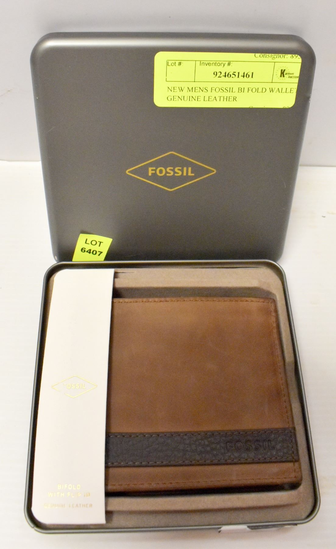 NEW MENS FOSSIL BI FOLD WALLET, GENUINE LEATHER