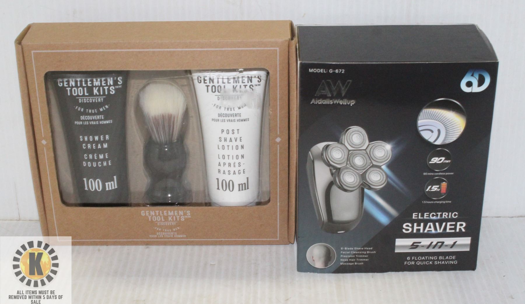 3PC GROOMING SET & NEW AIDALLSWELLUP MENS ELECTRIC HEAD SHAVER FOR BALD MEN RECHARGEABLE 5-IN-1 #G-672. ALL ITEMS MUST BE REMOVED WITHIN 5 DAYS OF SALE
