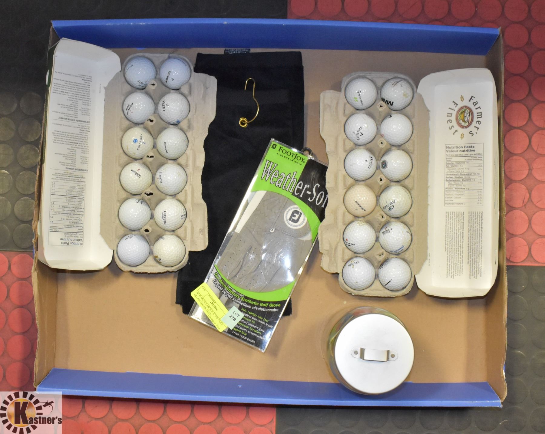 NEW MENS LARGE R HAND GOLF GLOVE, BALLS, TEES,