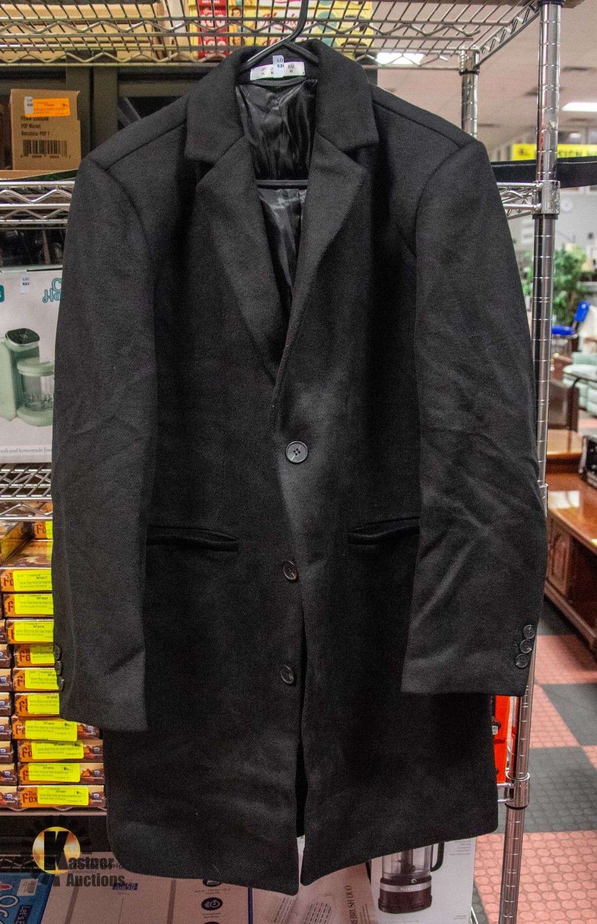 NEW MENS MEDIUM 3/4 LENGTH WOOL COAT, BLACK