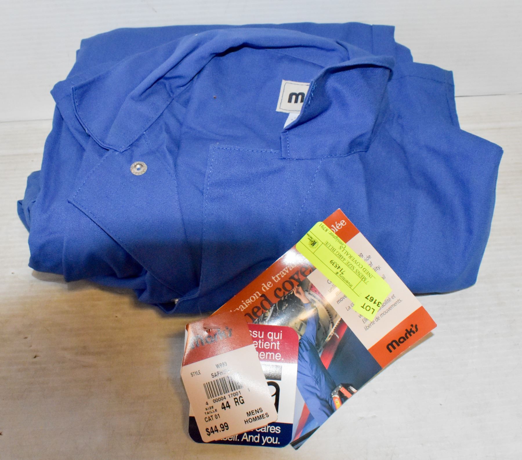 NEW MENS SIZE 44RG BLUE UNLINED COVERALLS