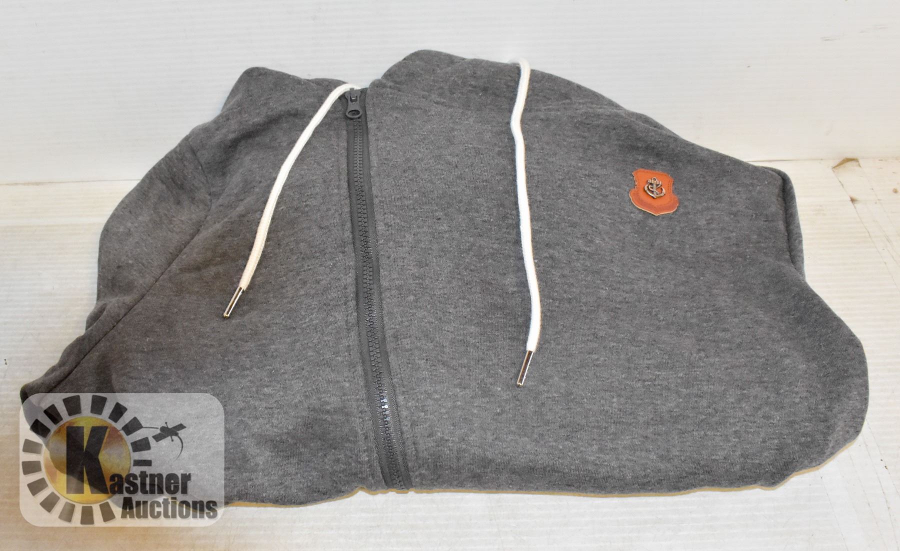 LEATHER PATCH LOGOS, DRAW STRING HOOD, OVERLAPPING DESIGN, AMZ SES